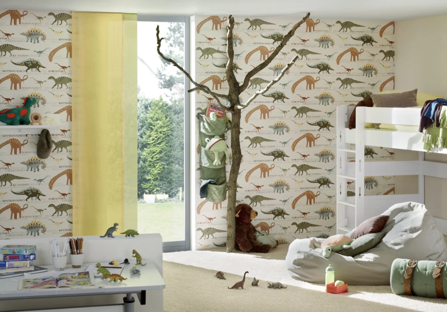 Machen Sie Ihren Kleinen eine Freude mit dieser Tapete BOYS & GIRLS 5 mit Dinosaurier-Druck. Ihre Kinder werden sie lieben!