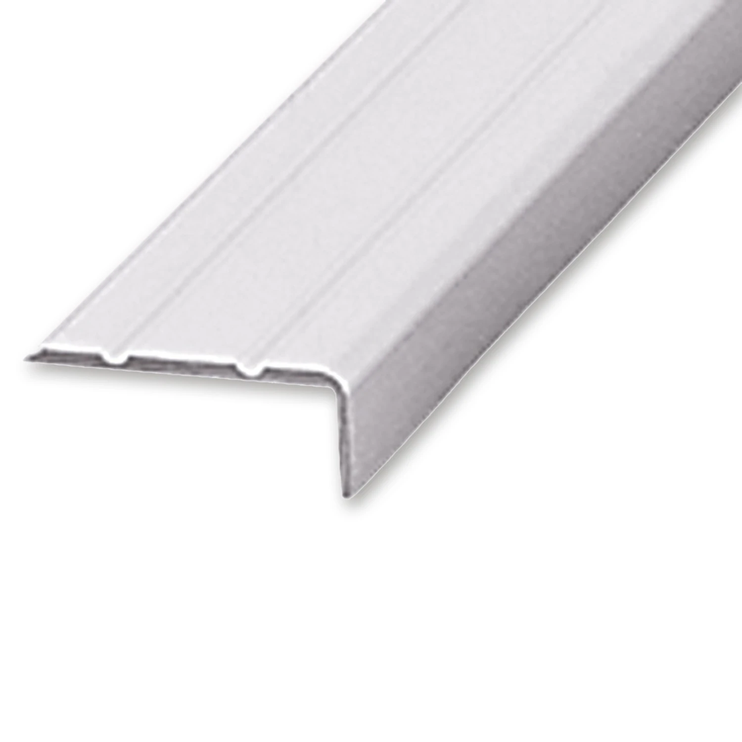 Silberfarbener Treppenwinkel SD aus Aluminium mit einer Höhe von 8 mm und einer Tiefe von 23 mm.