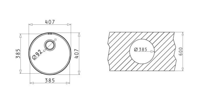 - Spülenmaß: Ø ca. 38,5 x 15 cm