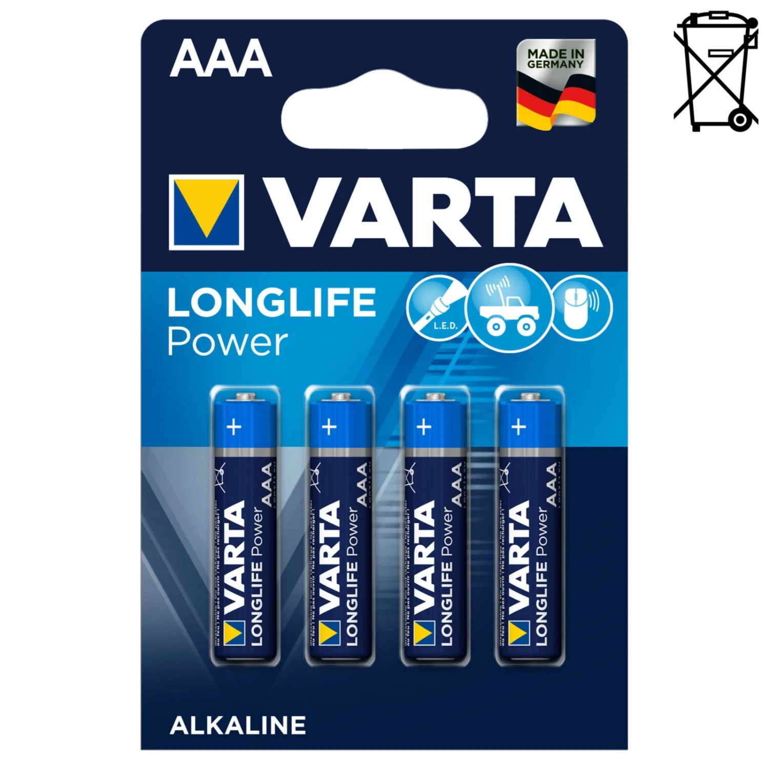 Praktisches 4er-Set LONGLIFE POWER AAA VARTA Batterien für Radios, Uhren, Fernbedienungen und viele weitere Elektrogegenstände.
