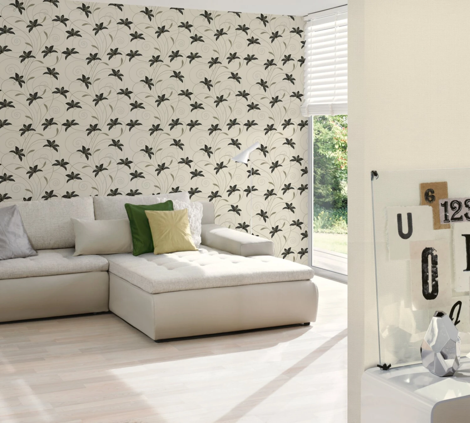 Vinyltapete ATLANTA mit schönem Blumendesign. Kosmopolitisch trifft auf historisch die moderne Tapetenkollektion Atlanta sorgt mit ihrem fröhlichen Charme für ein junges Wohnambiente.