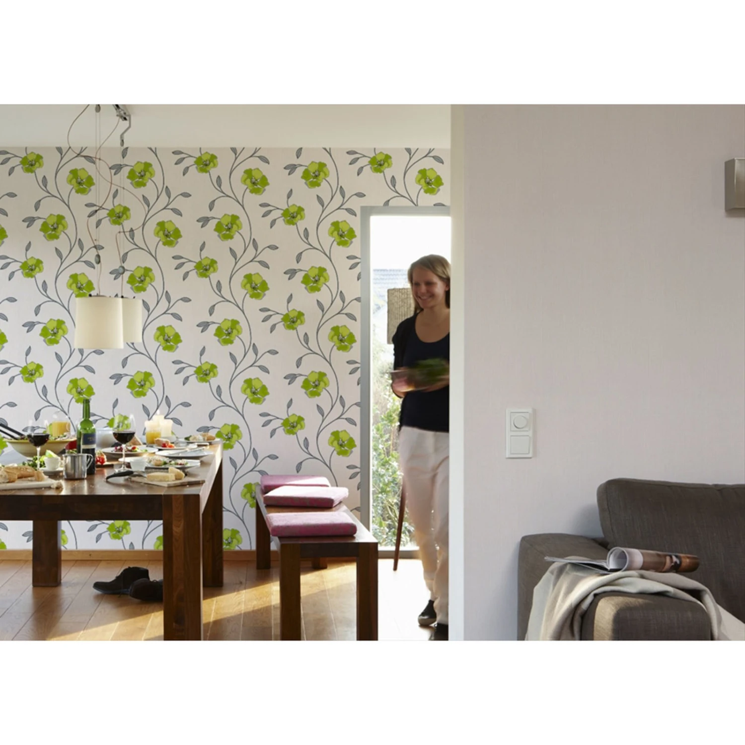 Warme, cremefarbene Vinyltapete mit leichter Struktur. Durch die Scheuerbeständigkeit und die hohe Strapazierfähigkeit ist Vinyl besonders gut für Ihre Küche, Ihr Badezimmer oder das Treppenhaus geeignet. Zudem ist es nur schwer entflammbar.