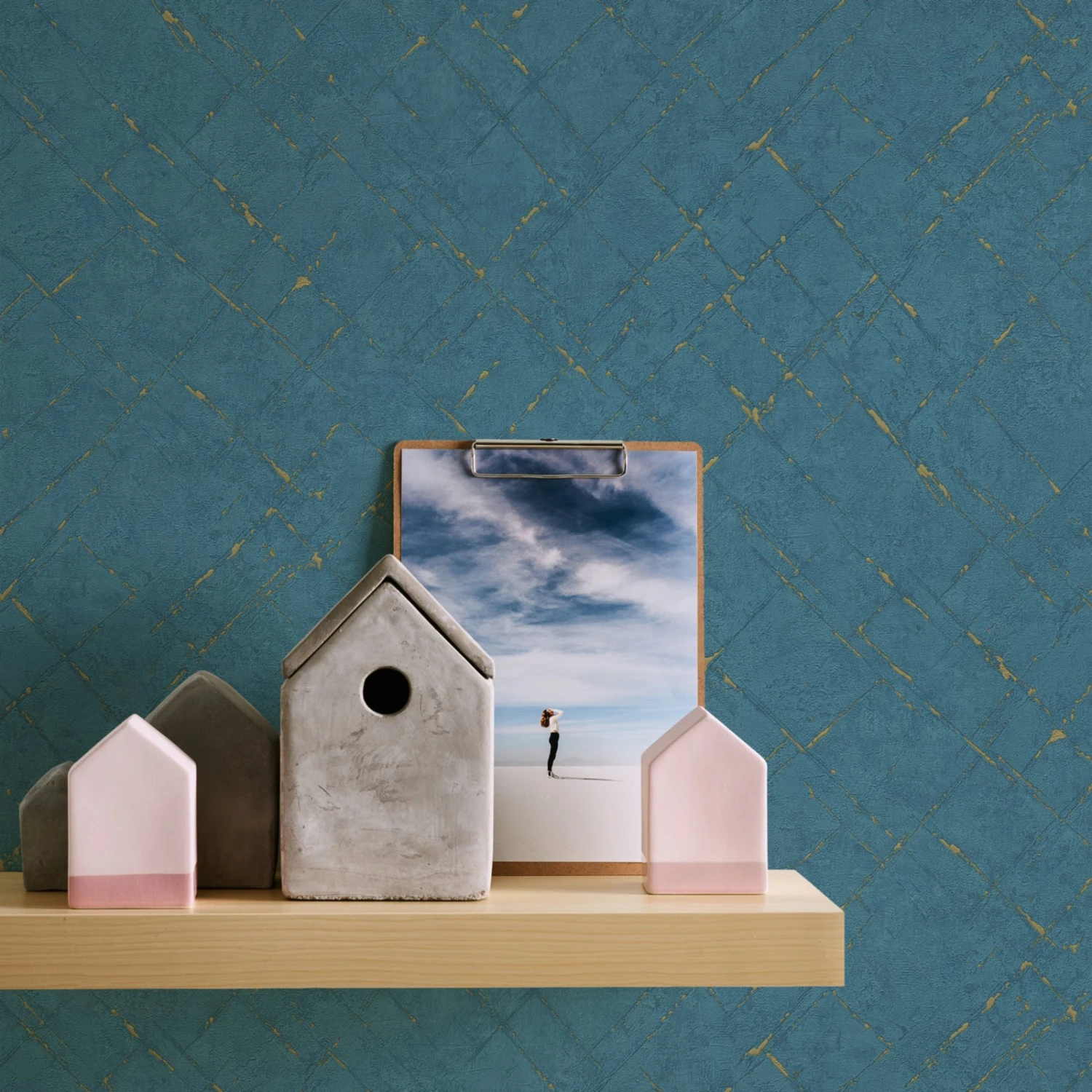 Vinyltapete Emotion Graphic – blau-gold – 10,05 Meter