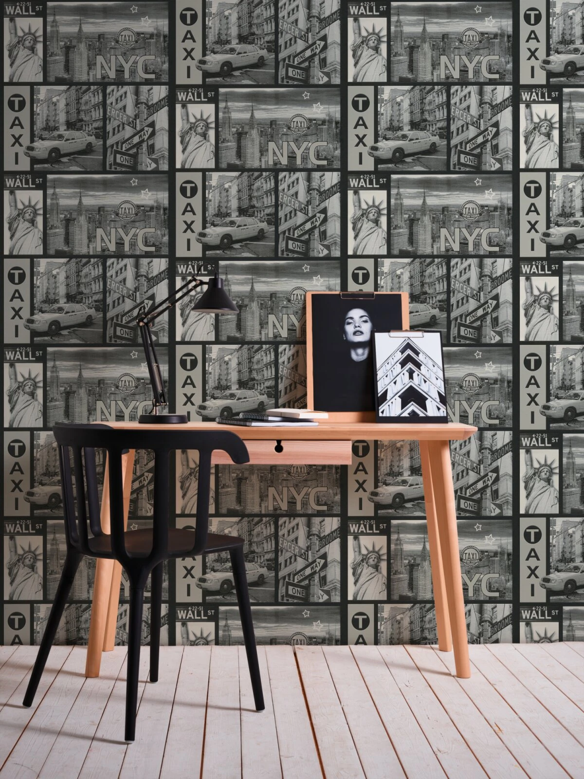 Gestalten Sie Ihre Räumlichkeiten mit dieser schwarz-weißen Vinyltapete aus der FARO 4 Kollektion wohnlicher und verleihen Sie Ihrem Zimmer einen persönlichen Touch! Die Tapete zeigt typische New York Impressionen und ist durch ihre dezente Farbgebung modern aber nicht zu aufdringlich. Sie lässt sich toll kombinieren und verfügt über qualitative und alltagstaugliche Eigenschaften.