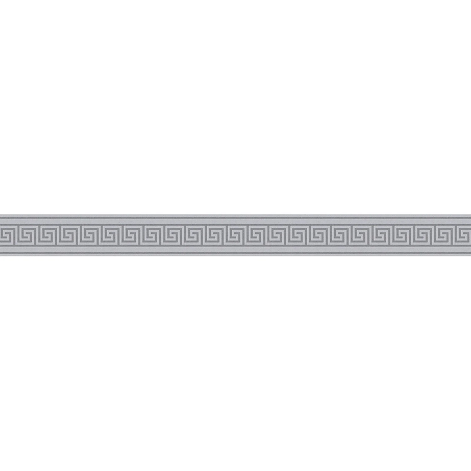 Modern gemusterte Vlies-Borte in Anthrazit. Diese Borte ist selbstklebend, benötigt somit kein Zubehör und ist besonders einfach anzubringen. Sie setzt einen besonders schönen Akzent zum Beispiel auf einer hellen Tapete.