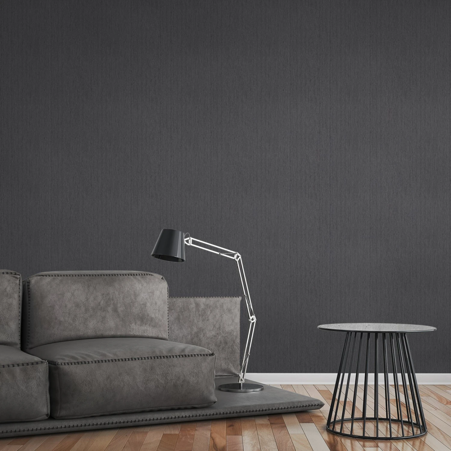Anthrazitfarbene Vliestapete mit eindrucksvoller Textiloptik und Struktur. Für einen Tapetenwechsel eignet sich diese Wanddekoration bestens, da sie sich in den verschiedensten Wohnstilen mit einfügt und ihren gewissen Charme versprüht.