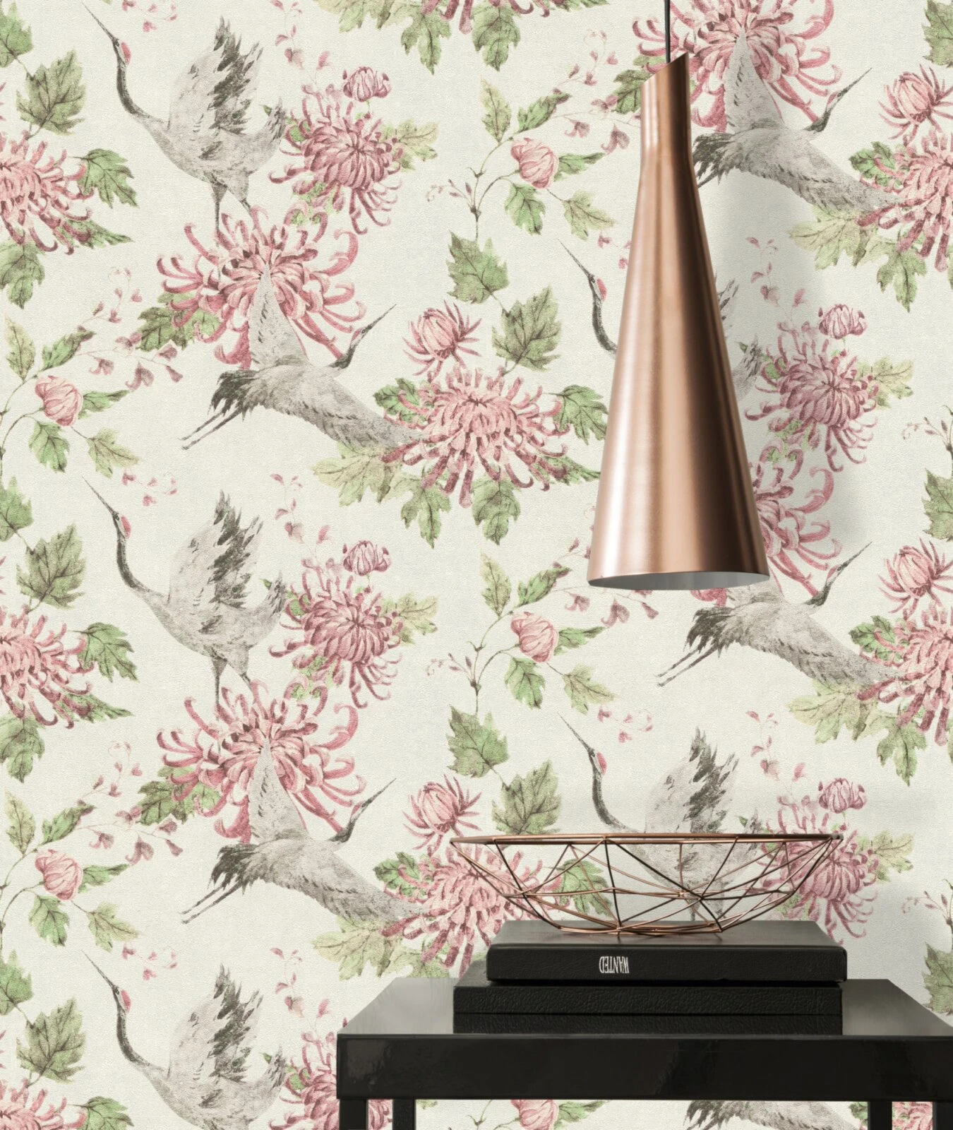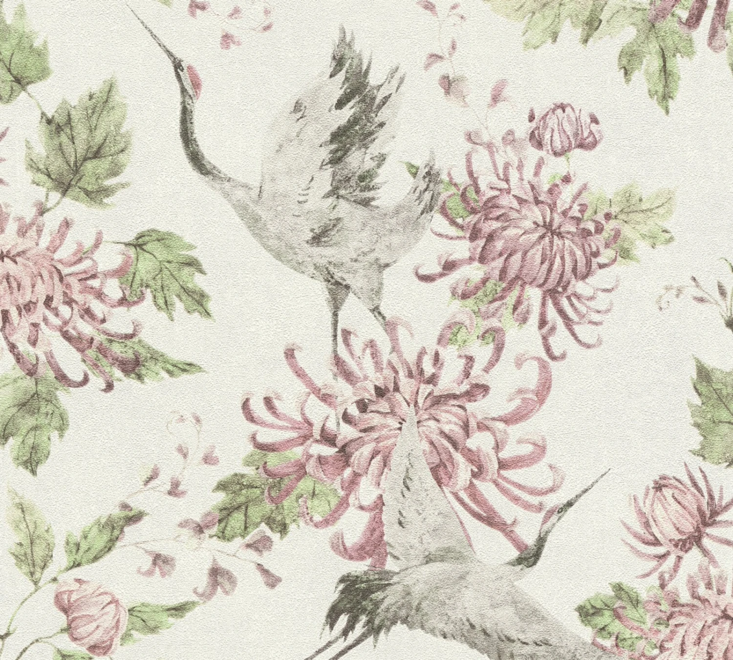 Vliestapete ASIAN FUSION – rosa-grün – 10 Meter