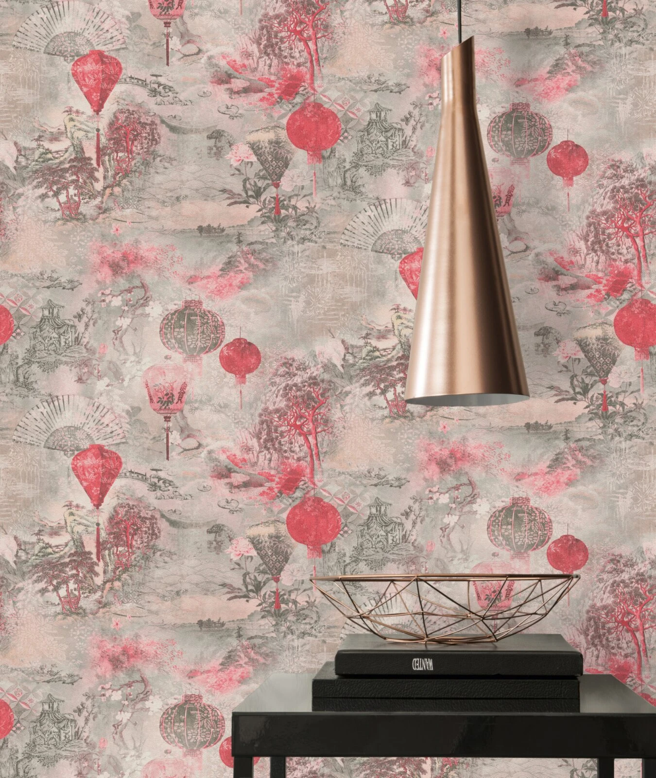 Vliestapete ASIAN FUSION – rosa-rot – 10 Meter