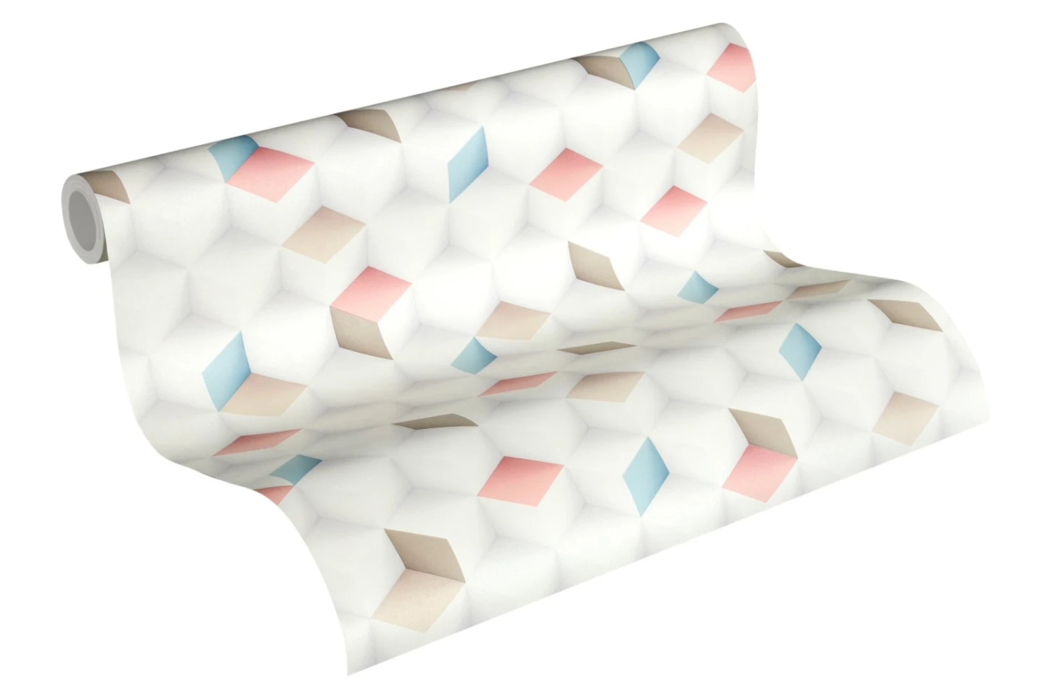 Vliestapete – beige-blau-rosa – Modern – 10 Meter