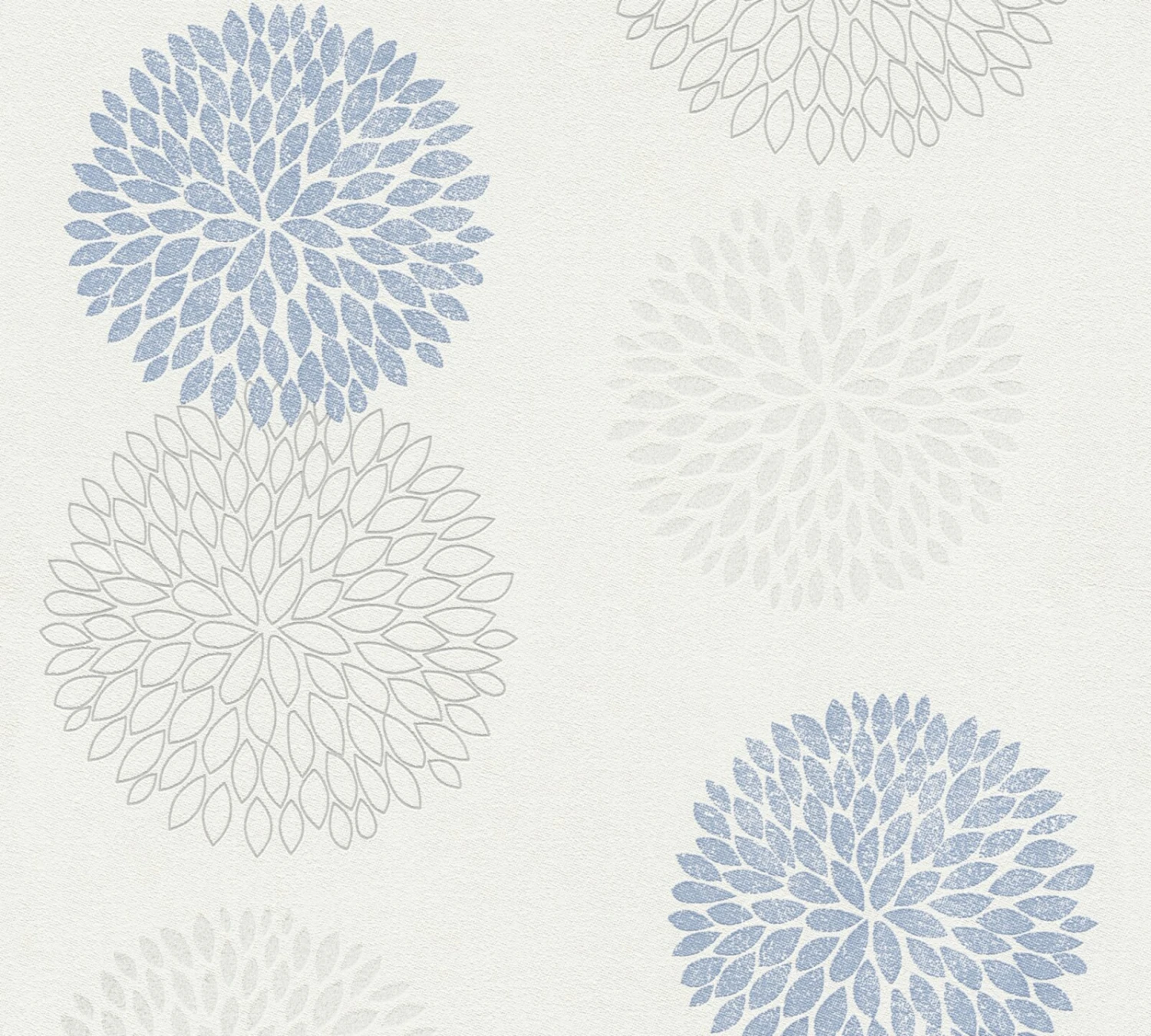 Vliestapete BLOOMING – blau-grau – 10 Meter