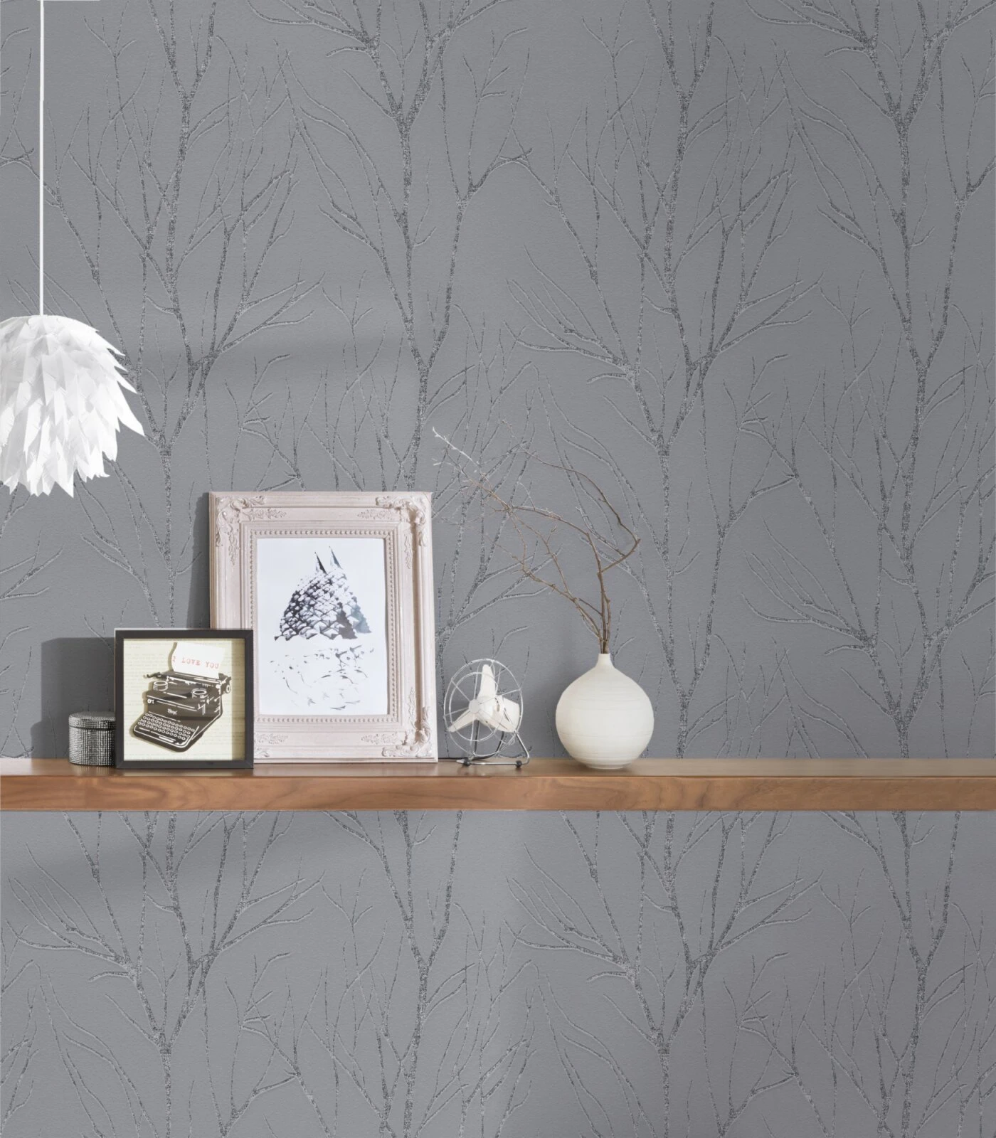 Eine besondere Waldtapete im Farbton Grau verwandelt Ihr Zuhause in eine Wohlfühloase. Die Tapete hat die Abmessungen 10,05 Meter x 0,53 Meter mit einem geraden 64 cm Rapport. Der bei dieser Tapete verwendete Vliesträger ist FSC-Mix zertifiziert. Der Zusatz-Mix steht für die Verwendung von Holz aus FSC zertifizierten Wäldern und den Einsatz von Recyclingmaterial. Als Trägermaterial wird ein Vlies verwendet, welches überwiegend aus Zellstoff und textilen Fasern besteht, die aus Holz gewonnen werden.