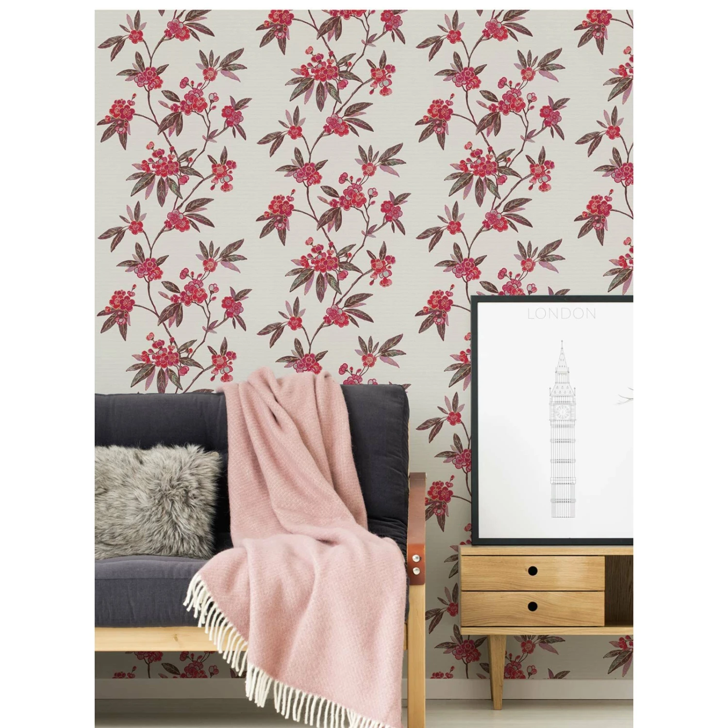 Vliestapete – Blütenranke – weiß-rot – 10 Meter