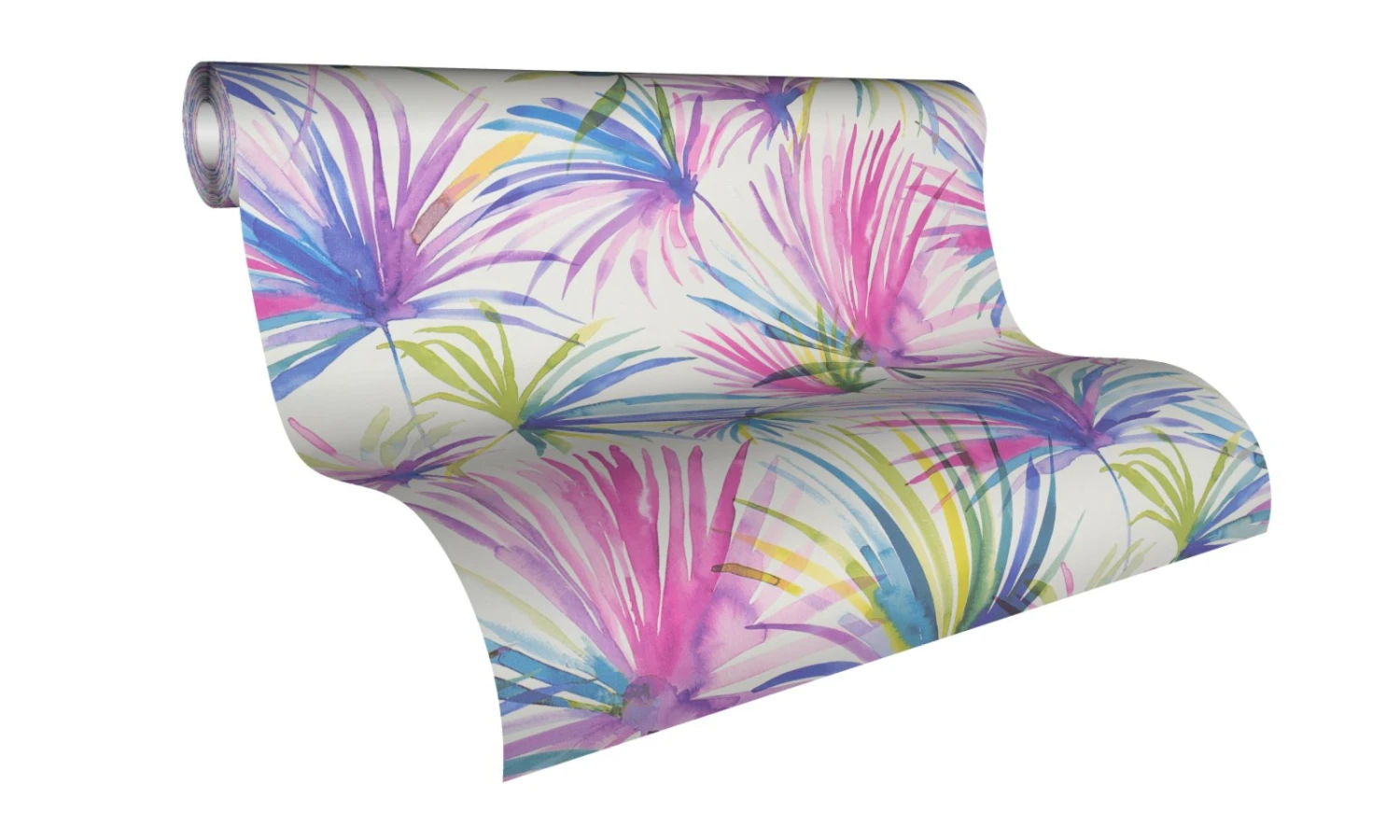 Vliestapete – COLIBRI – Bunte Blätter – weiß-gelb-lila – 10 Meter