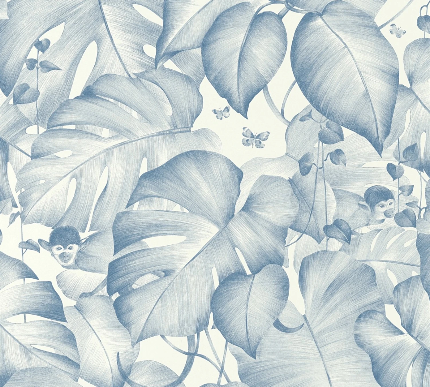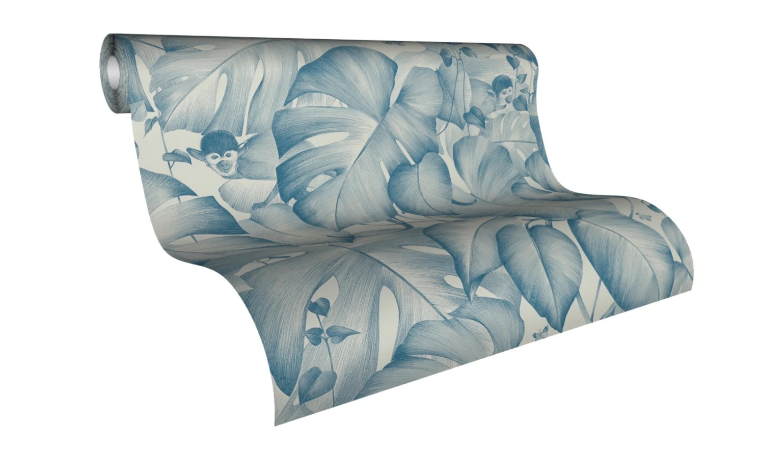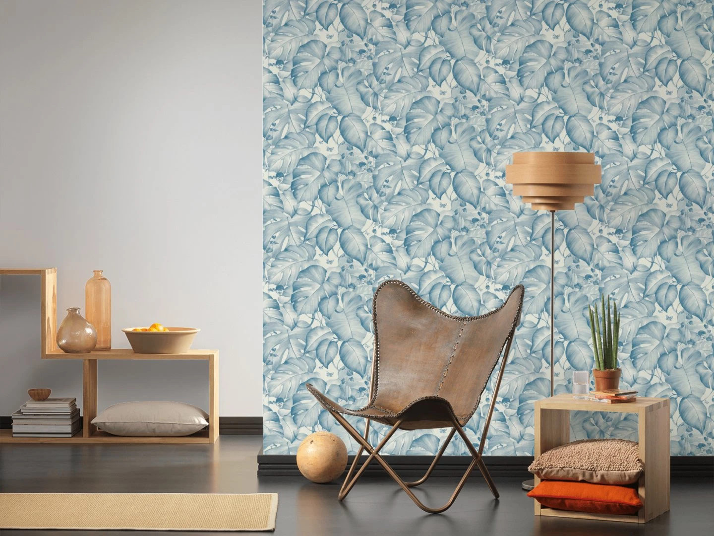 Vliestapete – COLIBRI – Dschungel – blau-weiß – 10 Meter