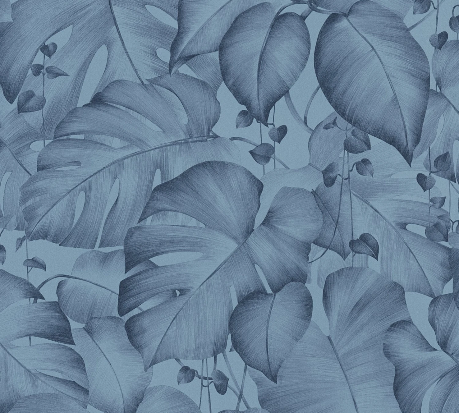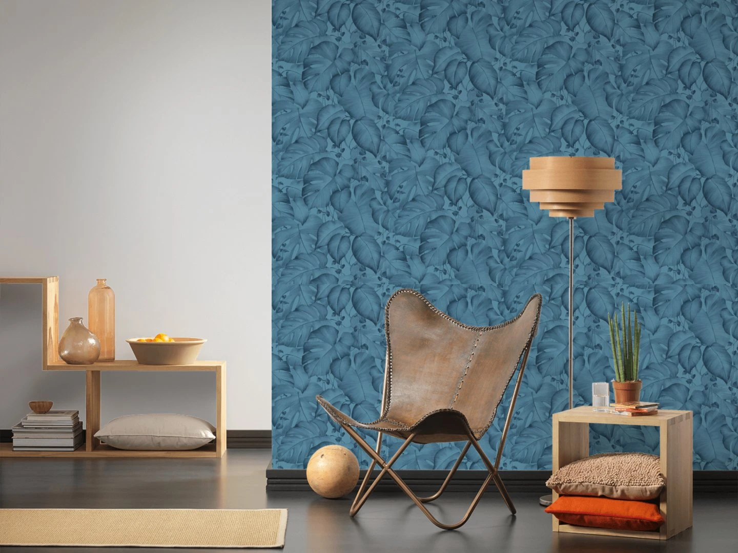 Vliestapete – COLIBRI – Palmenblatt – blau – 10 Meter