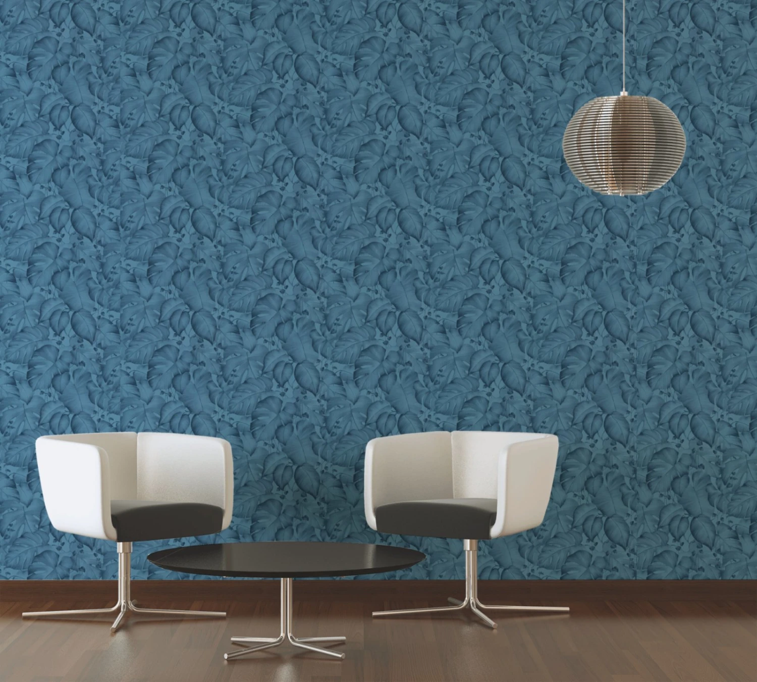 Dschungelfeeling gefällig? Dieses erhalten Sie garantiert mit dieser schönen blauen Palmentapete. Sie ist hoch waschbeständig, so dass kleine Verschmutzungen zu entfernen zu entfernen sind.