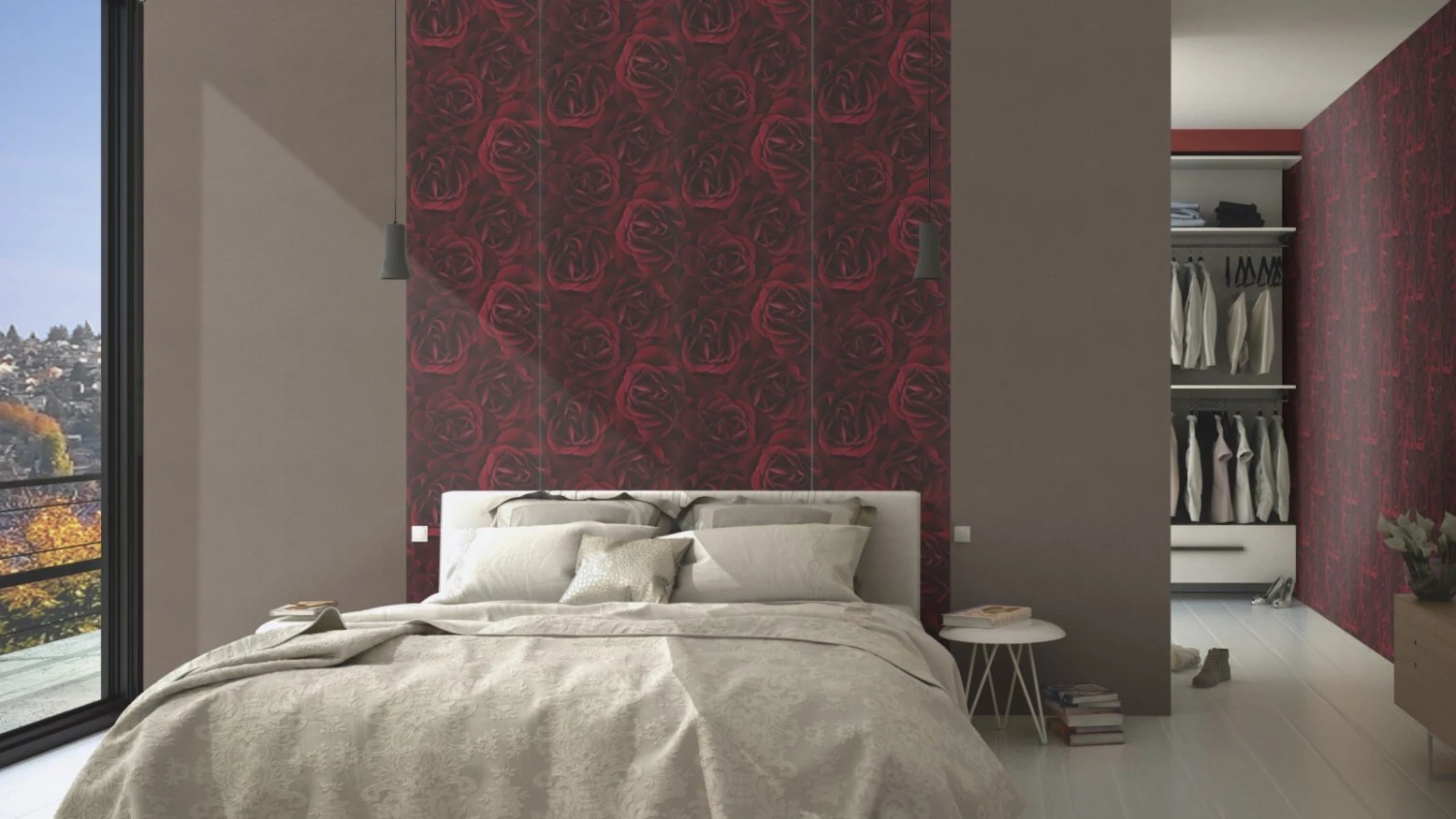 Großrahmige, überdimensionsgroße Rosenblüten entfalten auf diesem Tapetenvlies ihre volle Pracht und fangen mit einem zarten Schimmer einzelne Lichtstrahlen reflexartig auf. Für Wände, die jeden Tag aufs Neue begeisterte Blicke auf sich ziehen werden.