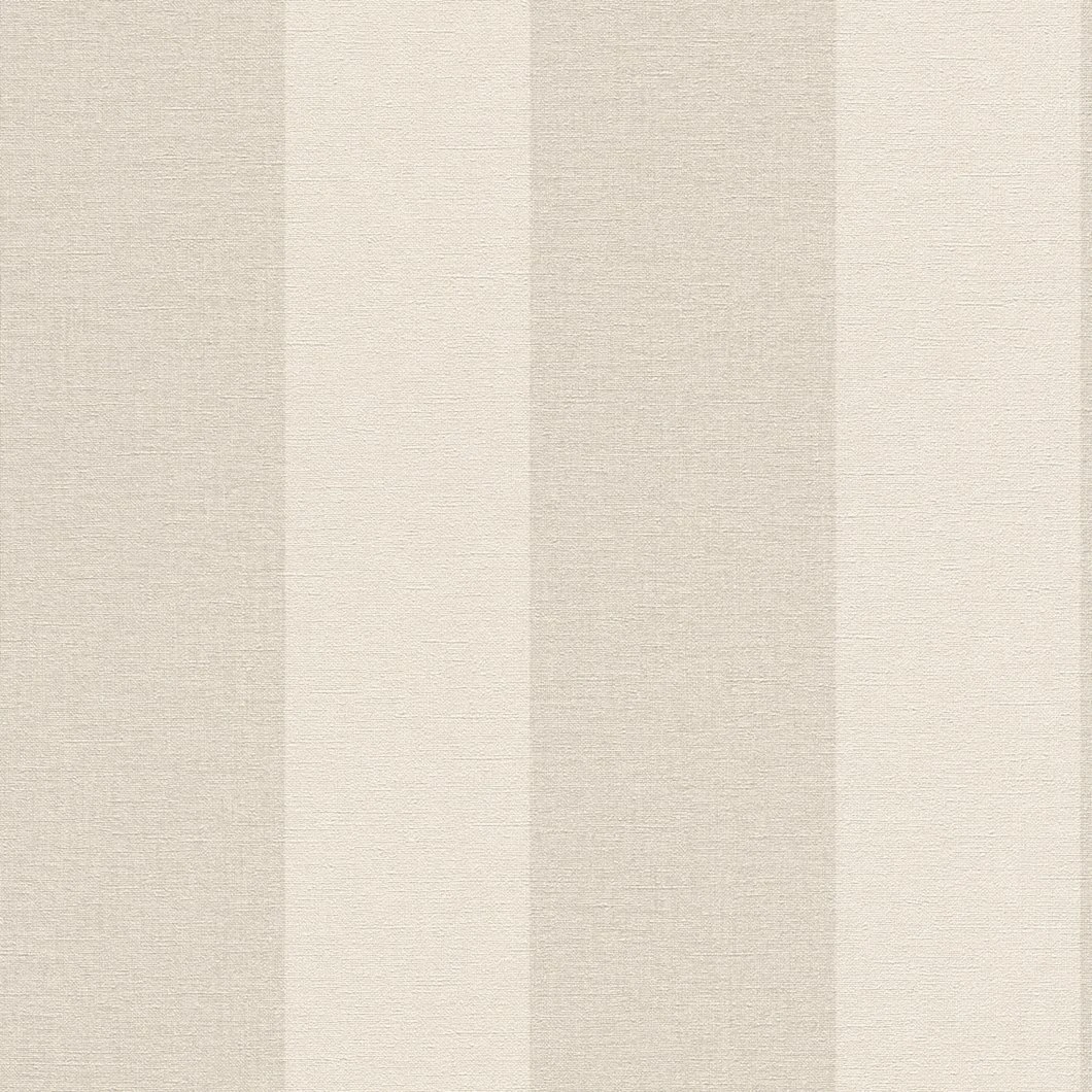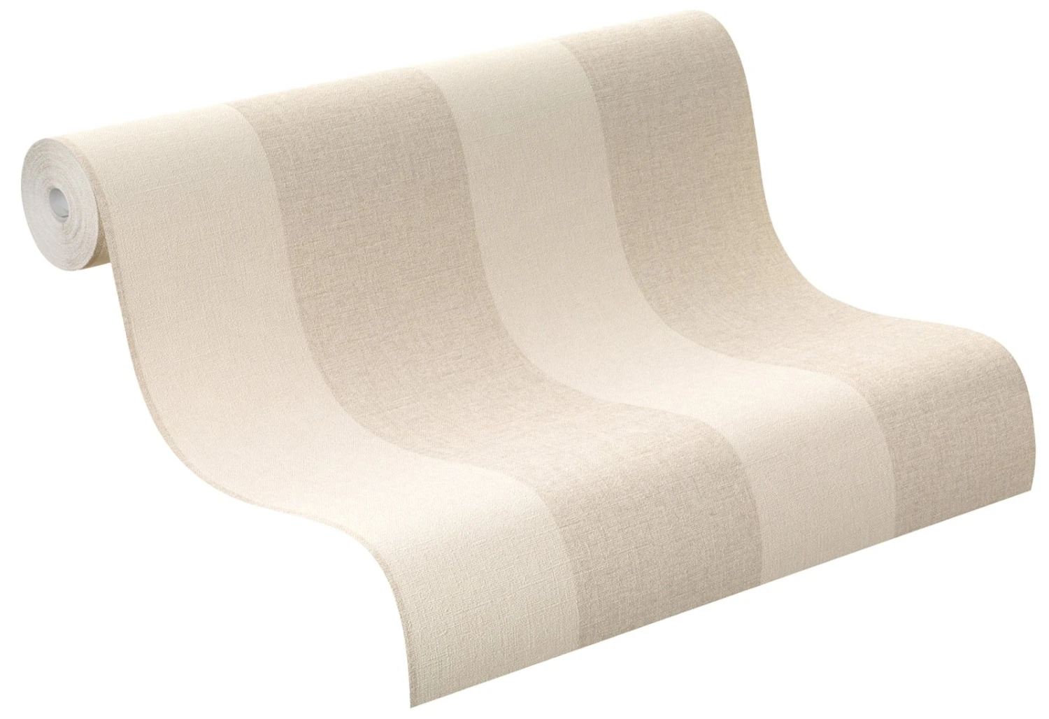 Für Wände können Streifen nie breit genug sein – wohingegen man in der Mode lieber Abstand davon halten sollte. Diese Blockstreifen kommen aber unter Garantie sehr kleidsam für Ihr Zuhause daher und sind in der klassischen Wohnwelt immer voll im Trend. Die zarten Braun- und Beigetöne heben den leinentuchartigen Untergrund des Tapetenvlieses besonders schön hervor.