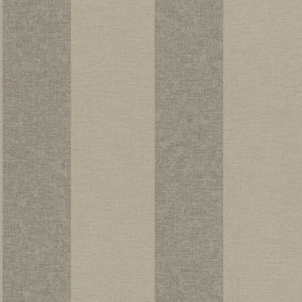 Für Wände können Streifen nie breit genug sein – wohingegen man in der Mode lieber Abstand davon halten sollte. Diese Blockstreifen kommen aber unter Garantie sehr kleidsam für Ihr Zuhause daher und sind nicht nur in der klassischen Wohnwelt immer voll im Trend. Warmes Taupe und edles Schwarz heben den leinentuchartigen Untergrund des Tapetenvlieses besonders schön hervor.
