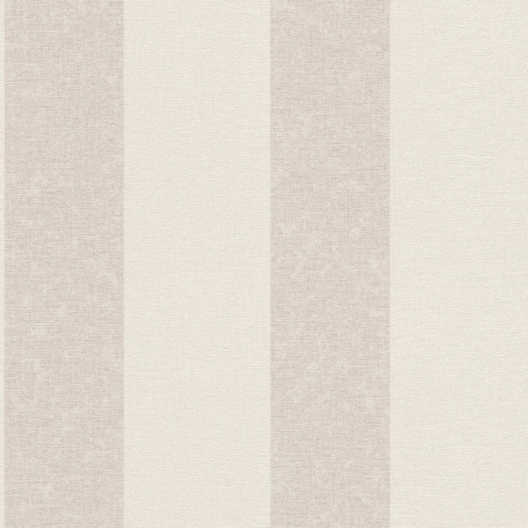 Für Wände können Streifen nie breit genug sein – wohingegen man in der Mode lieber Abstand davon halten sollte. Diese Blockstreifen kommen aber unter Garantie sehr kleidsam für Ihr Zuhause daher und sind nicht nur in der klassischen Wohnwelt immer voll im Trend. Zartes Grau und pastellenes Beige heben den leinentuchartigen Untergrund des Tapetenvlieses besonders schön hervor.