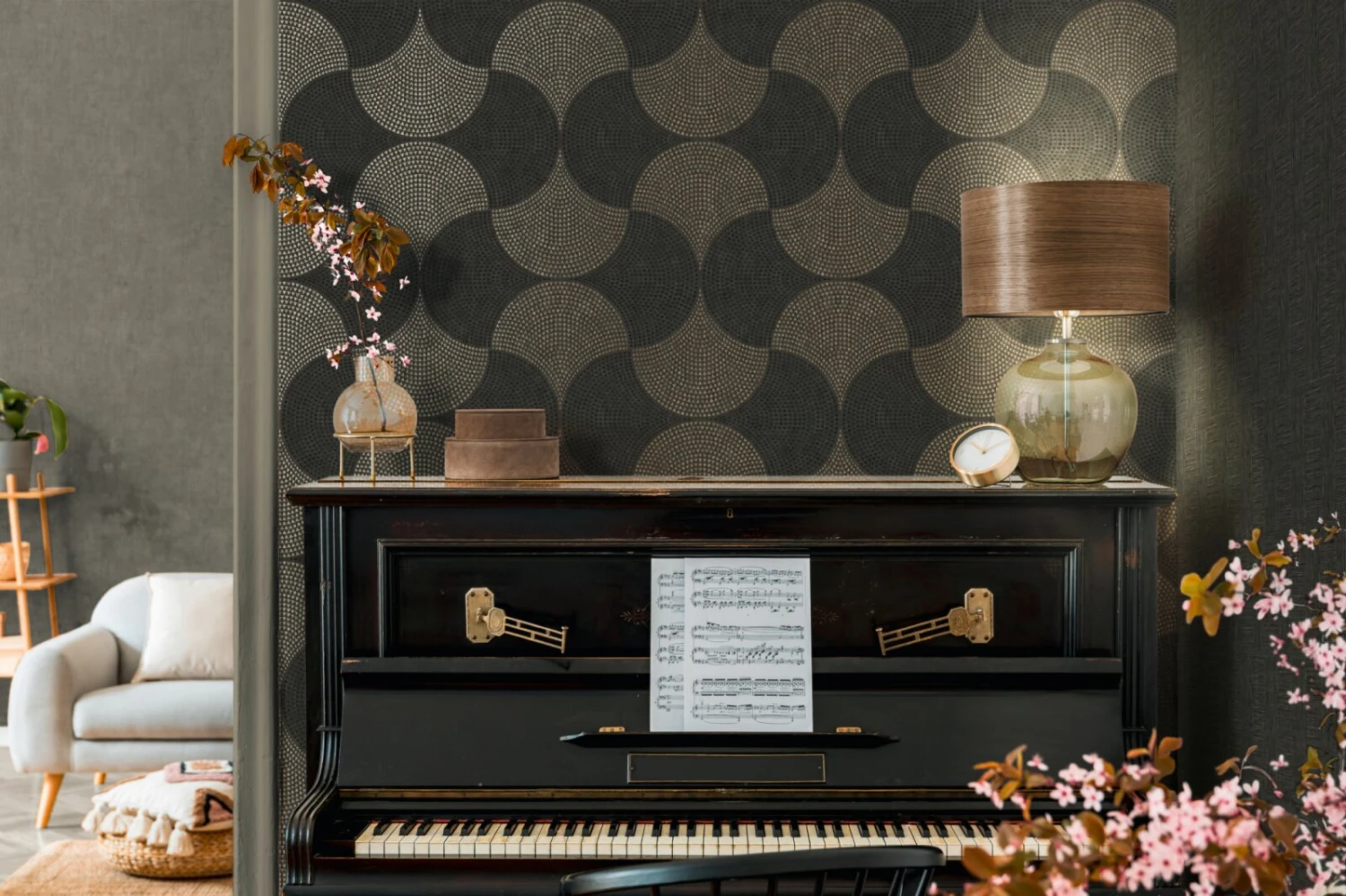 Mit dieser wunderschönen Grafiktapete in Grau und Metallic bekommt ihr Zuhause einen ganz neuen individuellen Stil. Das Trägermaterial der Tapete ist ein hochwertiges Vlies. Die Tapete ist scheuerbeständig, gut lichtbeständig und kann restlos abgezogen werden.