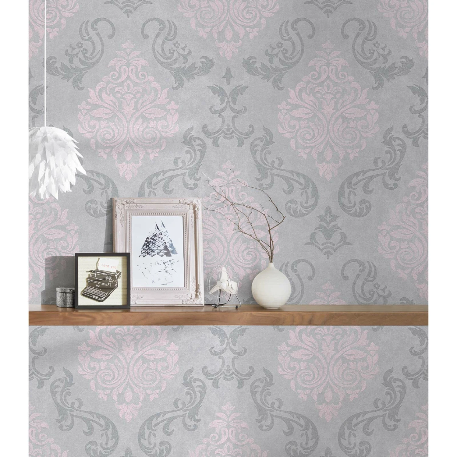Vliestapete – grau-rosa – Barock – 10 Meter