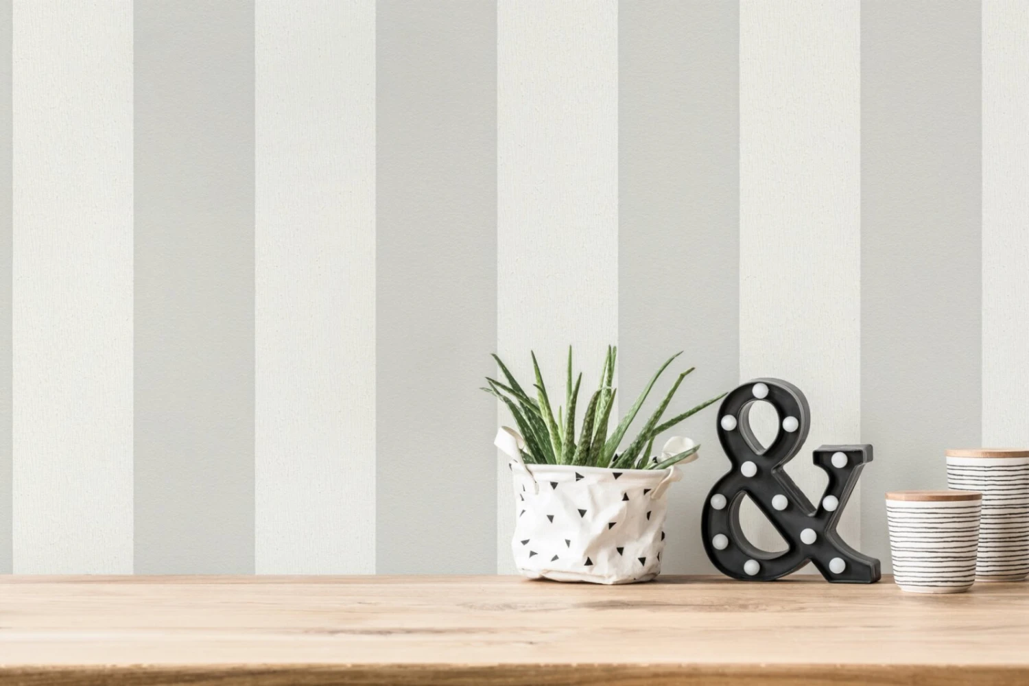 Vliestapete – grau-weiß – Streifen – 10 Meter