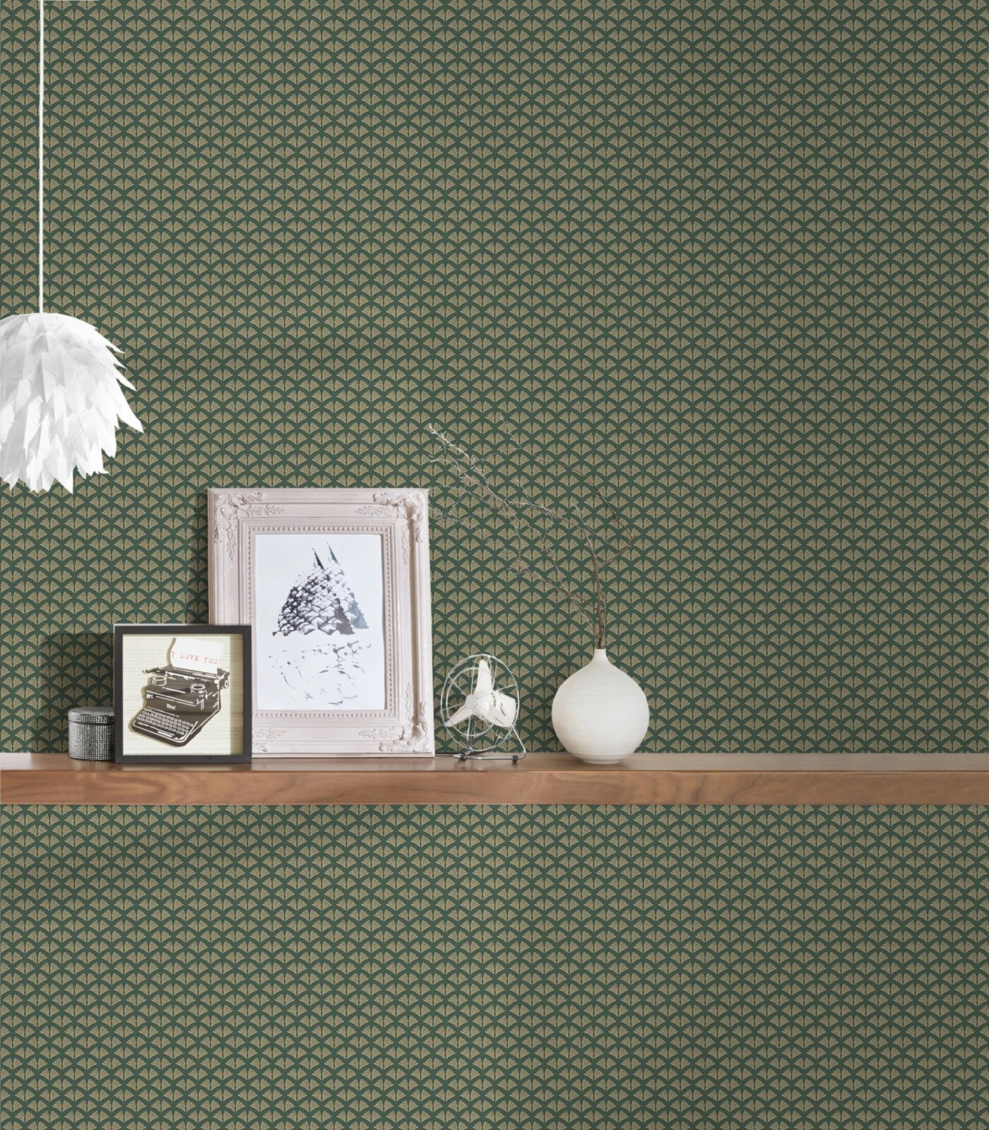 Vliestapete – grün-gold – Grafik – 10 Meter