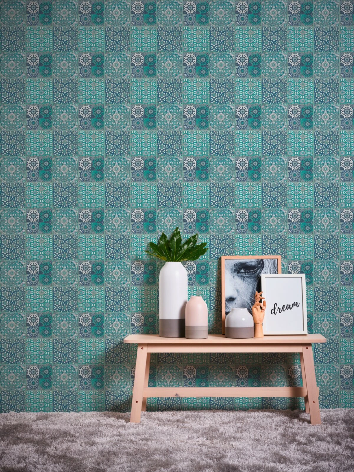 Vliestapete IL DECORO – blau-grün – 10 Meter