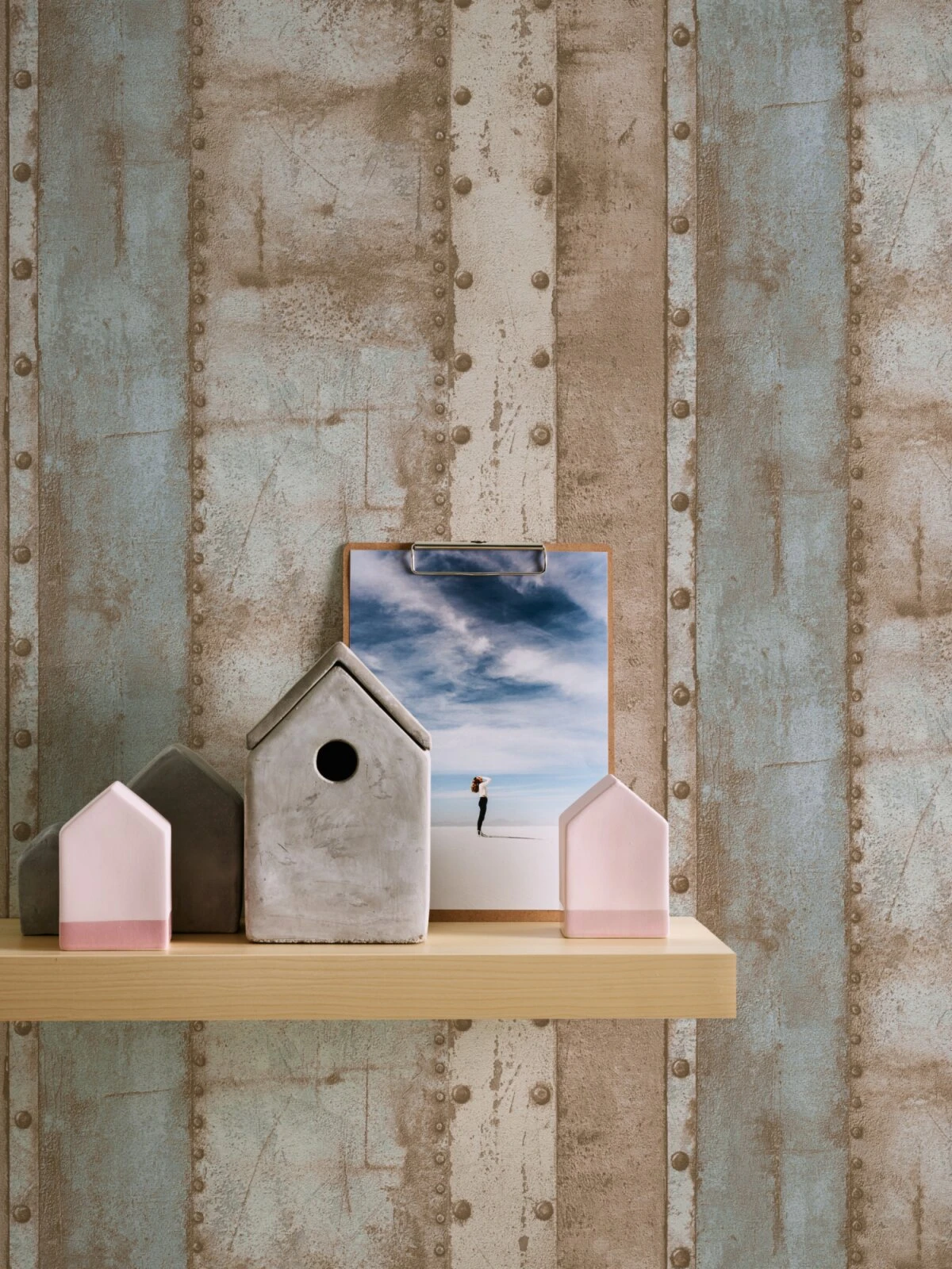 Vliestapete INDUSTRIAL – beige-blau – 10 Meter