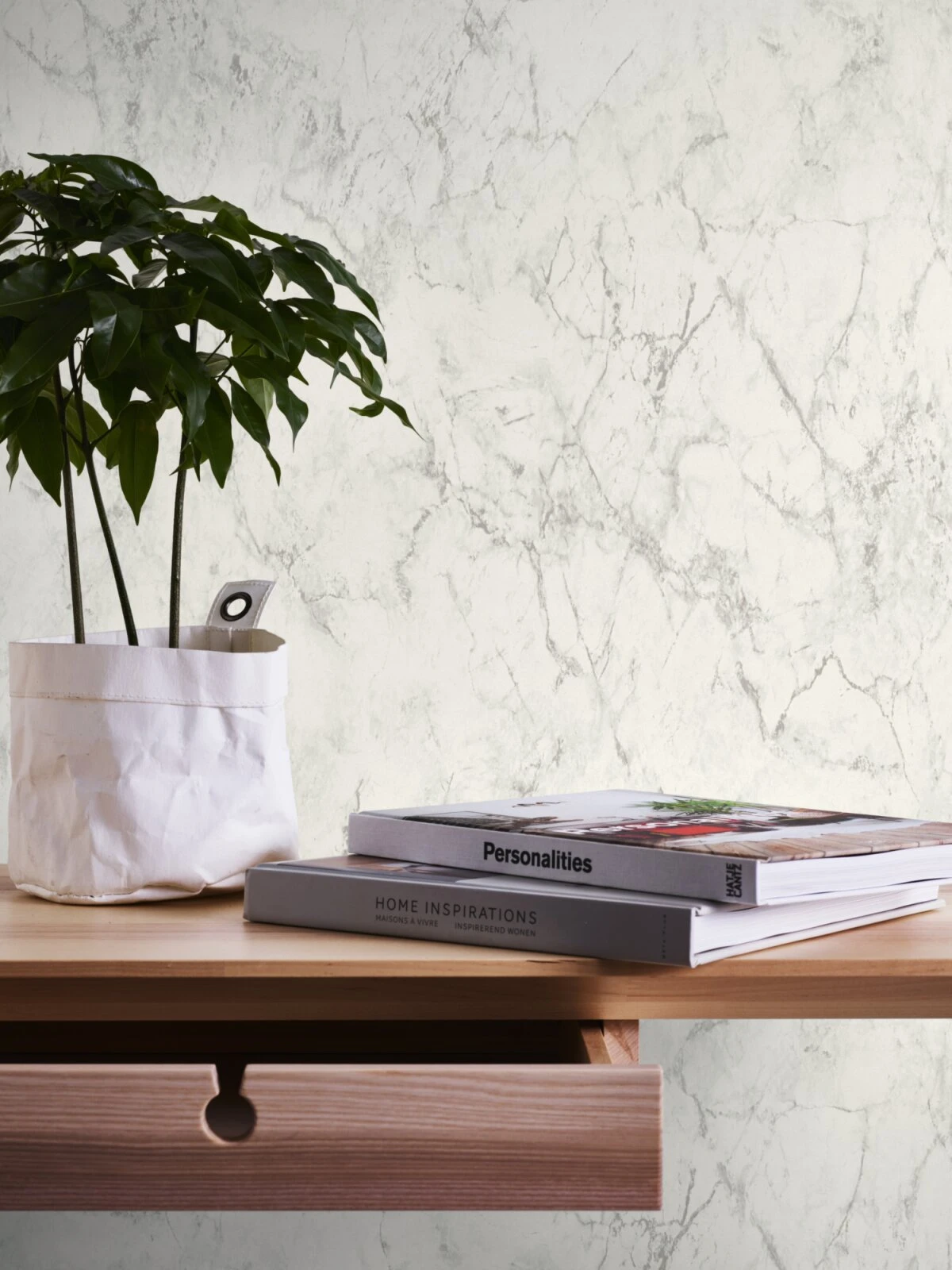 Vliestapete MATERIALS – weiß-braun – Marmor – 10 Meter