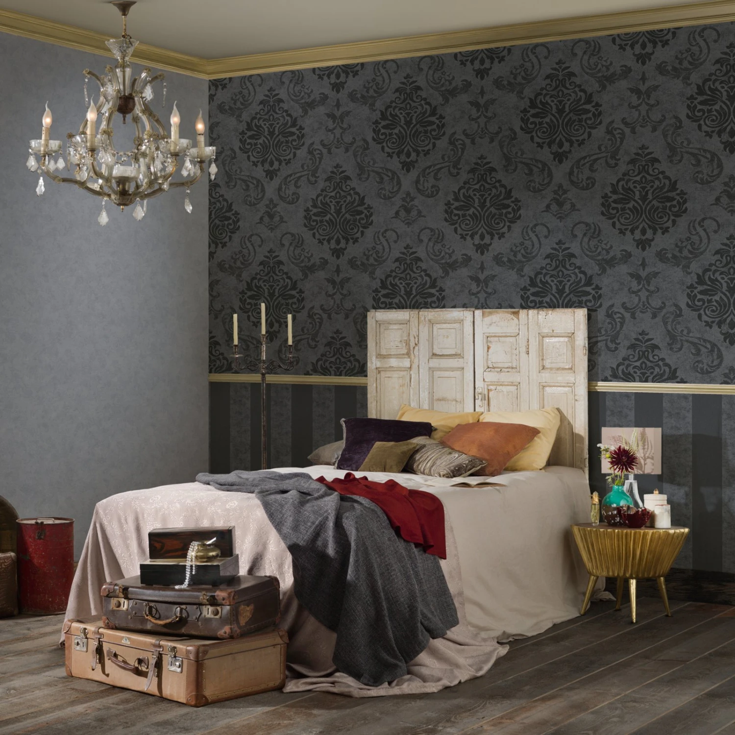 Diese Vliestapete aus der Kollektion MEMORY 3 präsentiert sich in Barock und ist in Grau metallic und schwarz gehalten. Als Eyecatcher an einer Wand kann diese Tapete sehr gut verwendet werden und verleiht dem Wohnraum eine elegante Note.