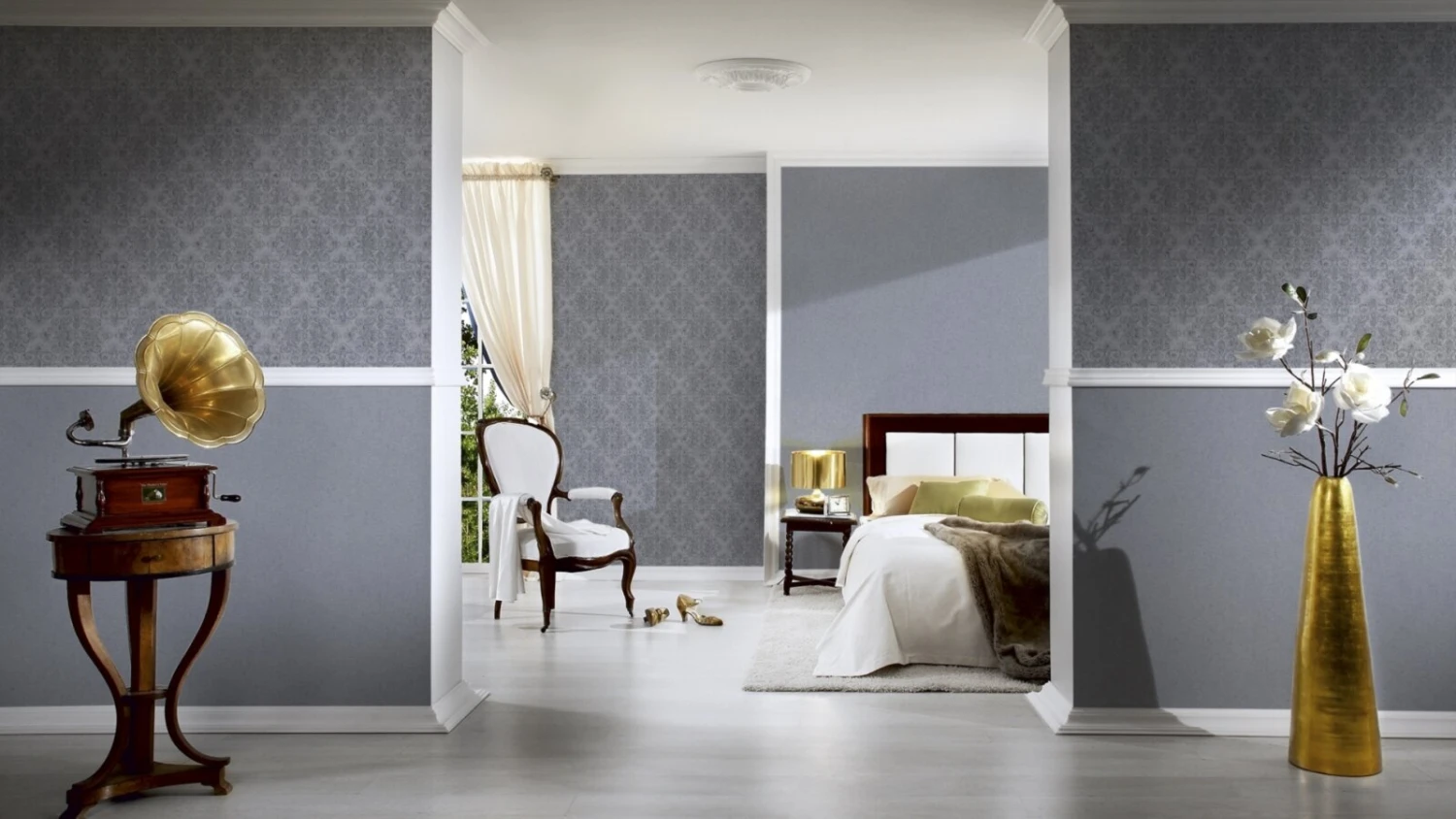 Die Tapete 319902 der Kollektion Midlands ist eine moderne Tapete im Neo-Klassikstil und kleidet Ihre Wände stilvoll und sinnlich.