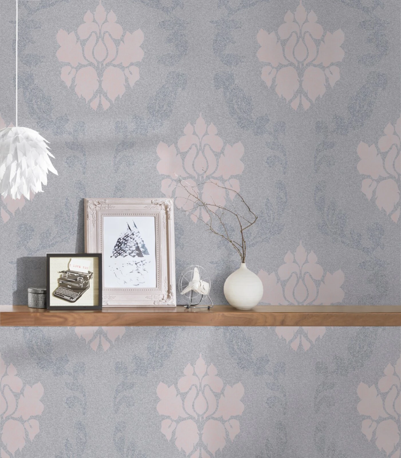 Vliestapete NEW ELEGANCE – rosa-grau – 10 Meter