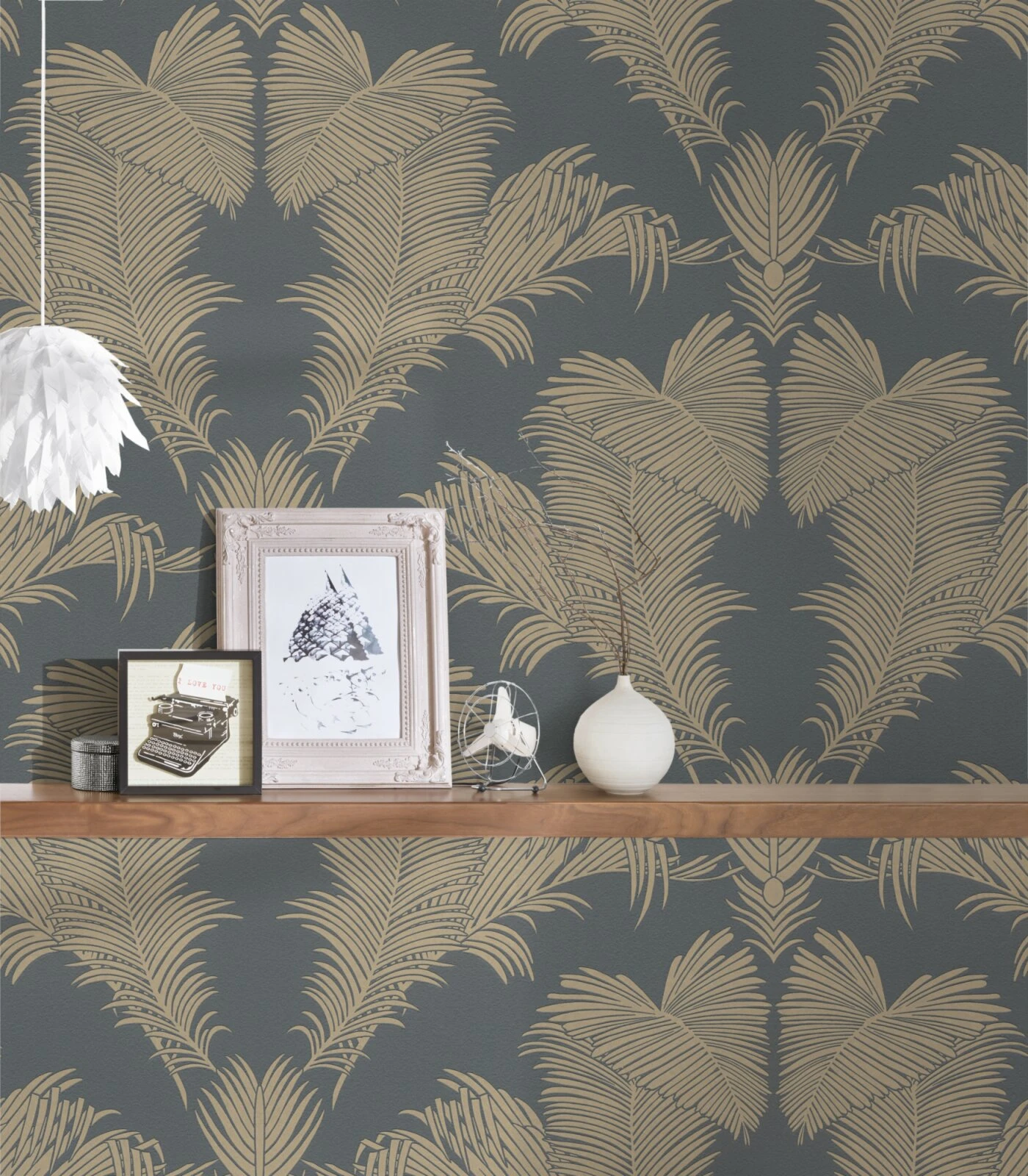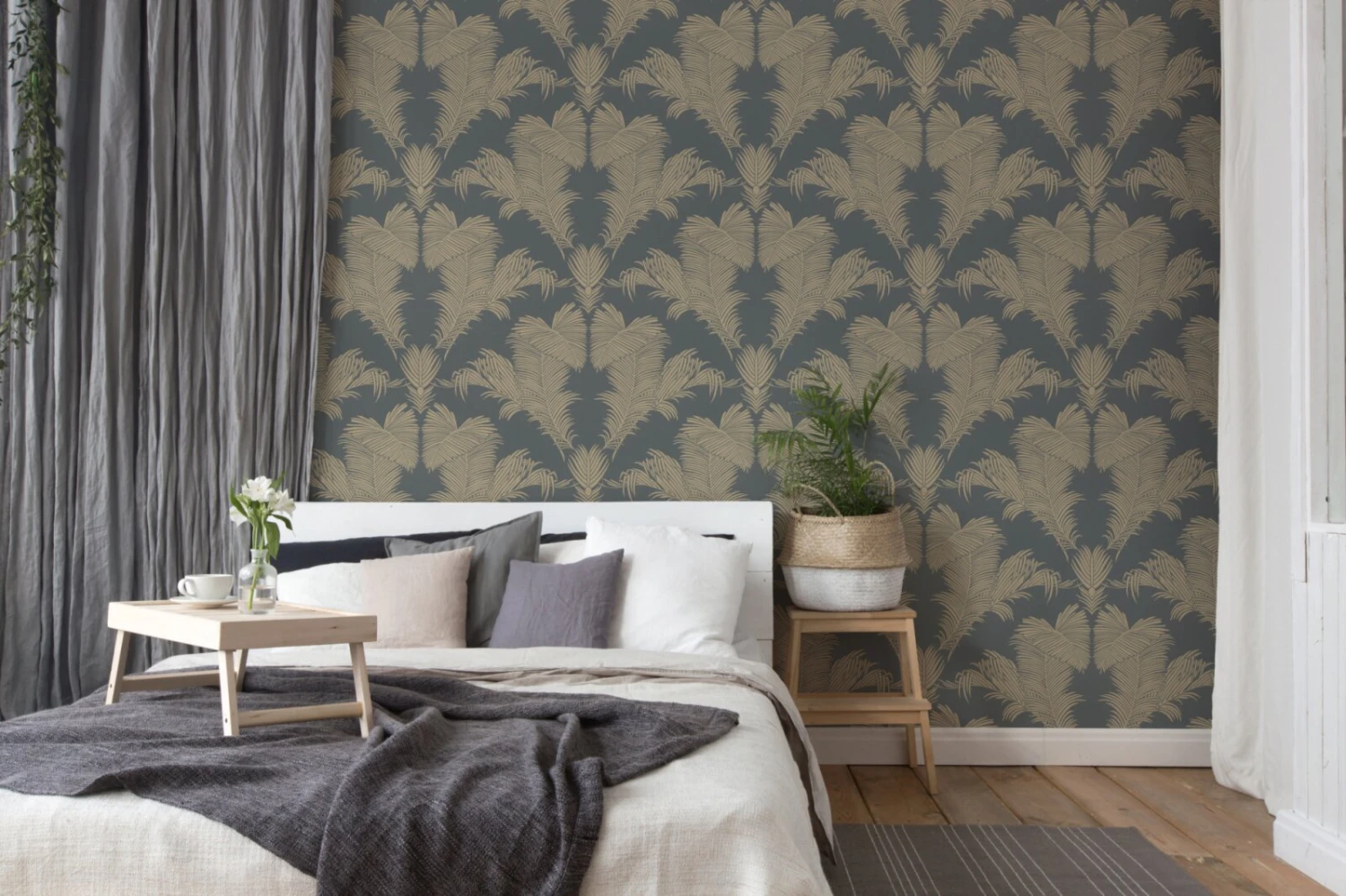 Vliestapete – Palmen – grau-gold – 10 Meter