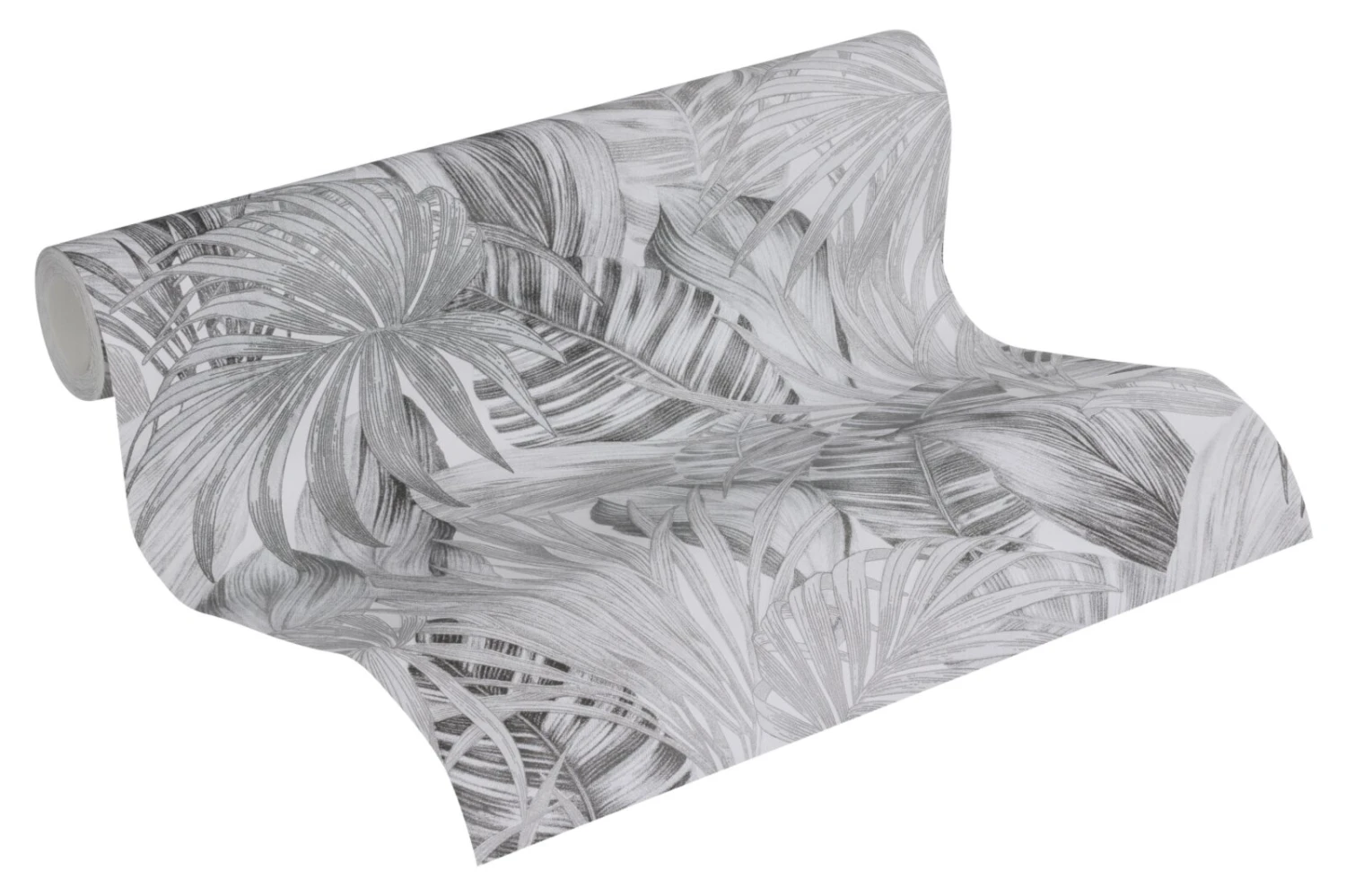 Vliestapete PALMEN – schwarz-weiß – 10 Meter
