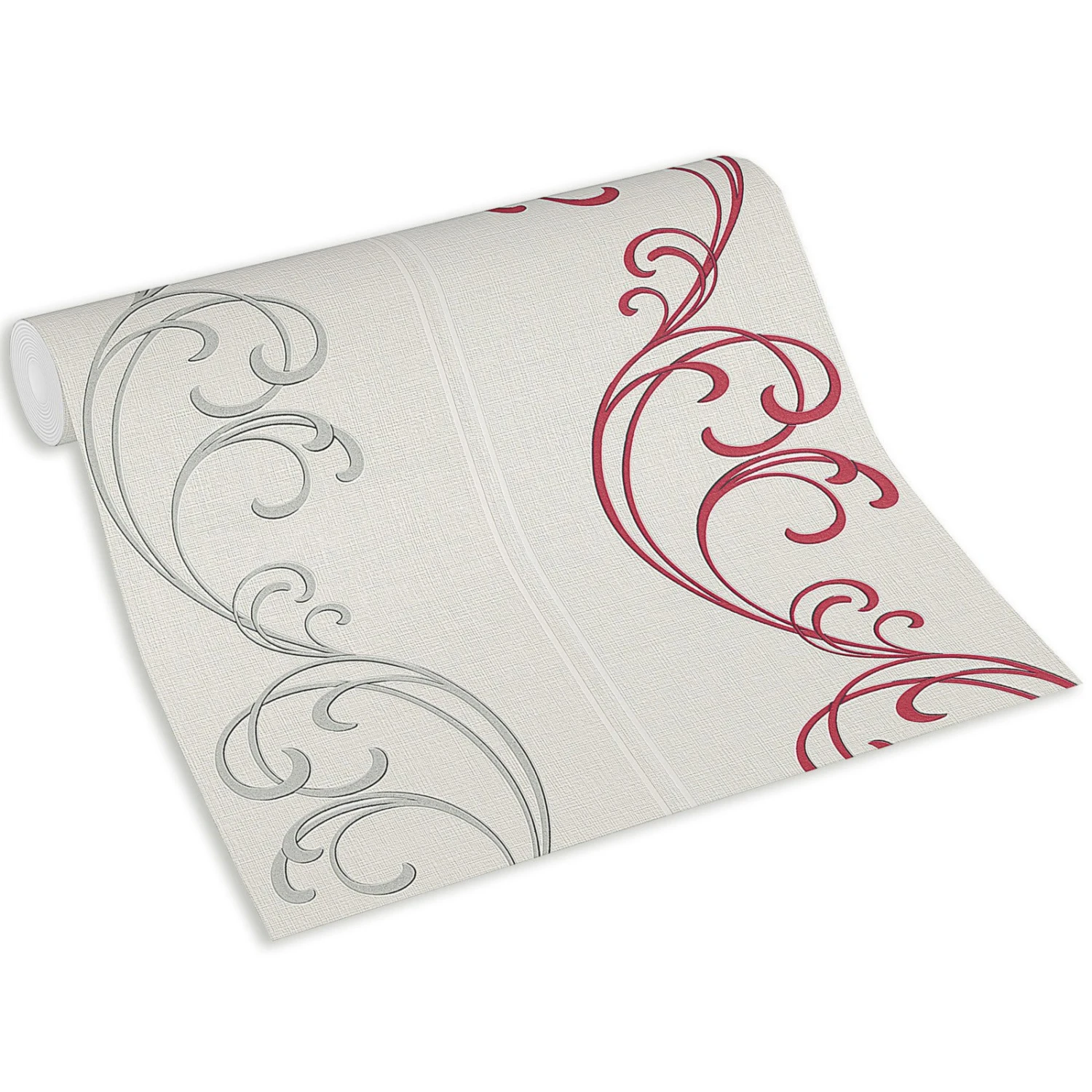 Vliestapete – rot-silber – Ornamente – 10 Meter