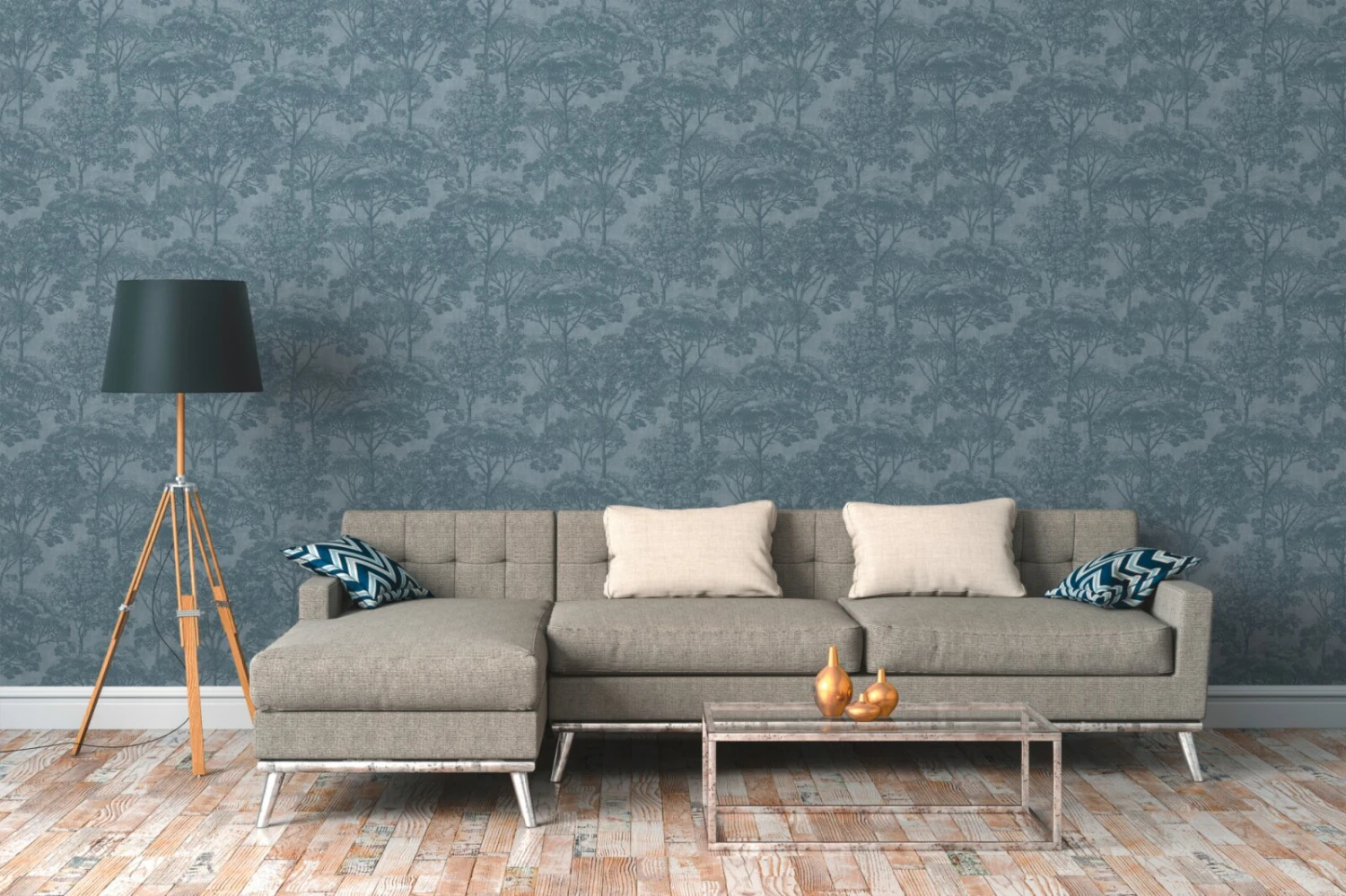 Vliestapete – Wald – blau – 10 Meter