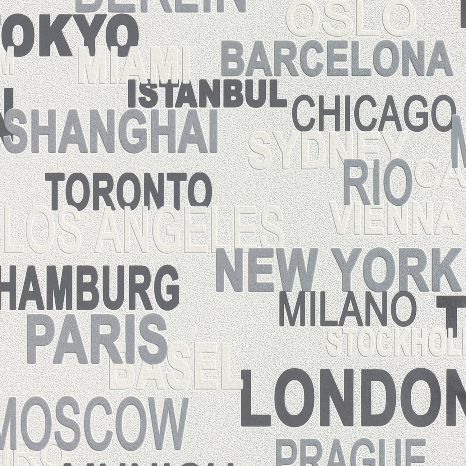 Diese stilvolle Vliestapete ist in weiß-silber gehalten und hat ein modernes Motiv aus den unterschiedlichsten Städtenamen. Schmücken Sie Ihre 4 Wände international und setzen Sie tolle Highlights! Auf der Tapetenrolle befinden sich ca. 10,5 Meter.