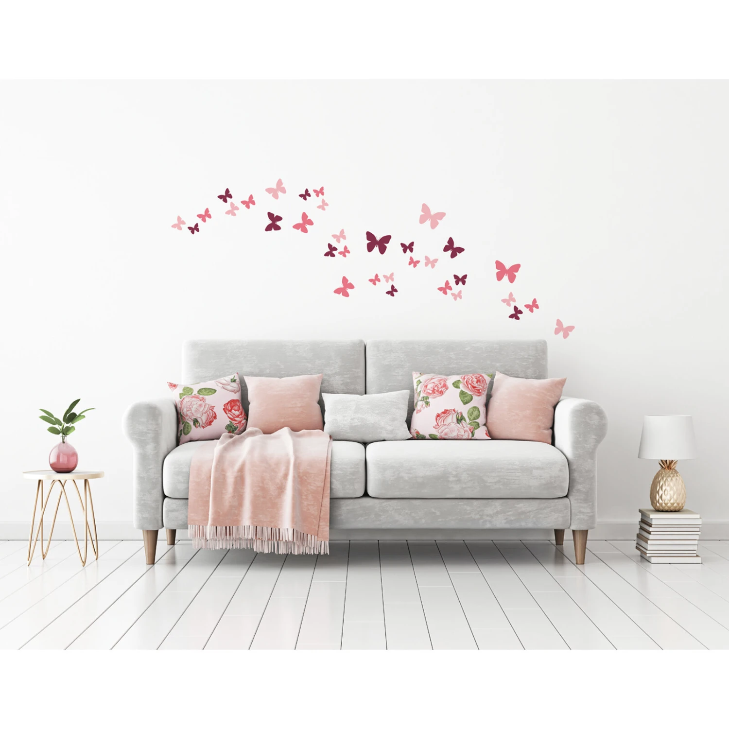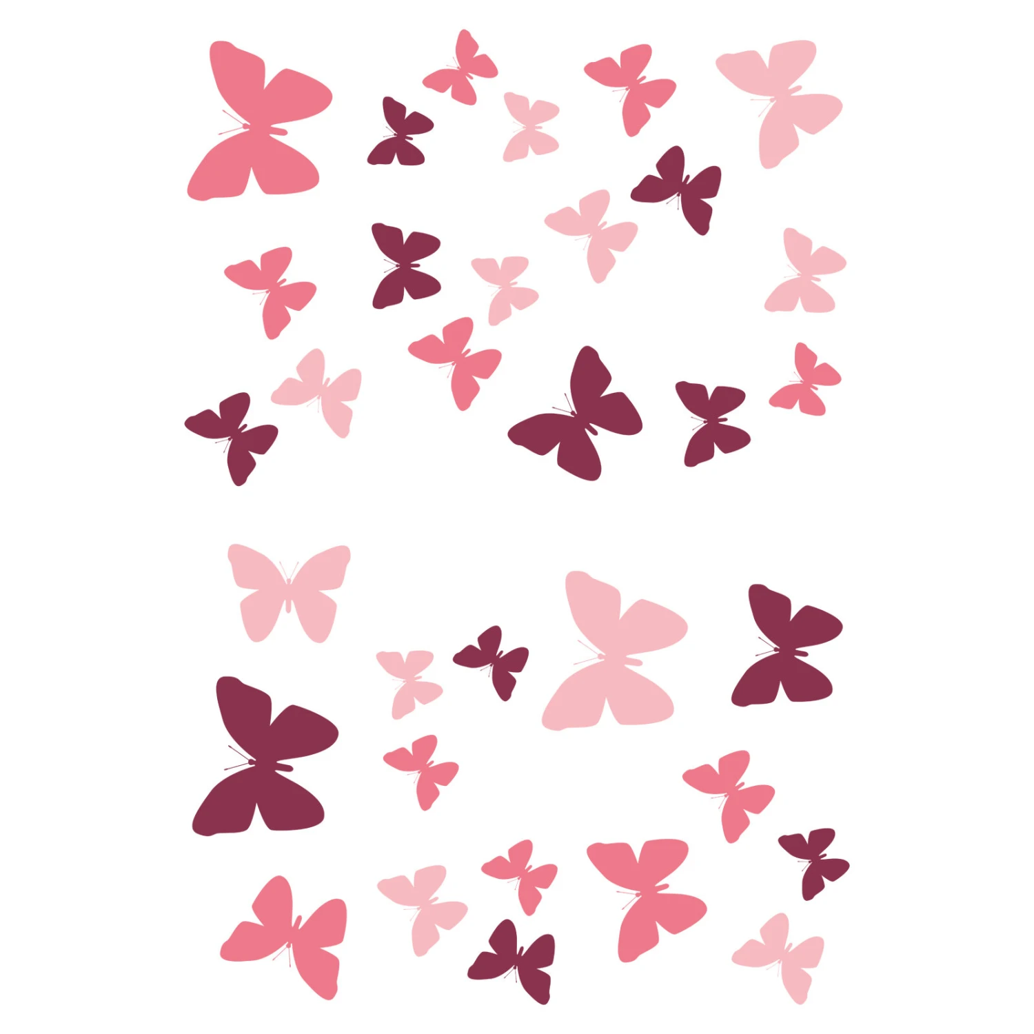 Verschönern Sie Ihren Wohnraum mit diesem knalligen Schmetterlings-Wandtattoo in verschiedenen rosa-pinken Farbtönen. Sie können die Schmetterlinge individuell an Ihrer Wand gestalten. Die Anbringung des Tattoos erfolgt sehr einfach, da es selbstklebend ist.