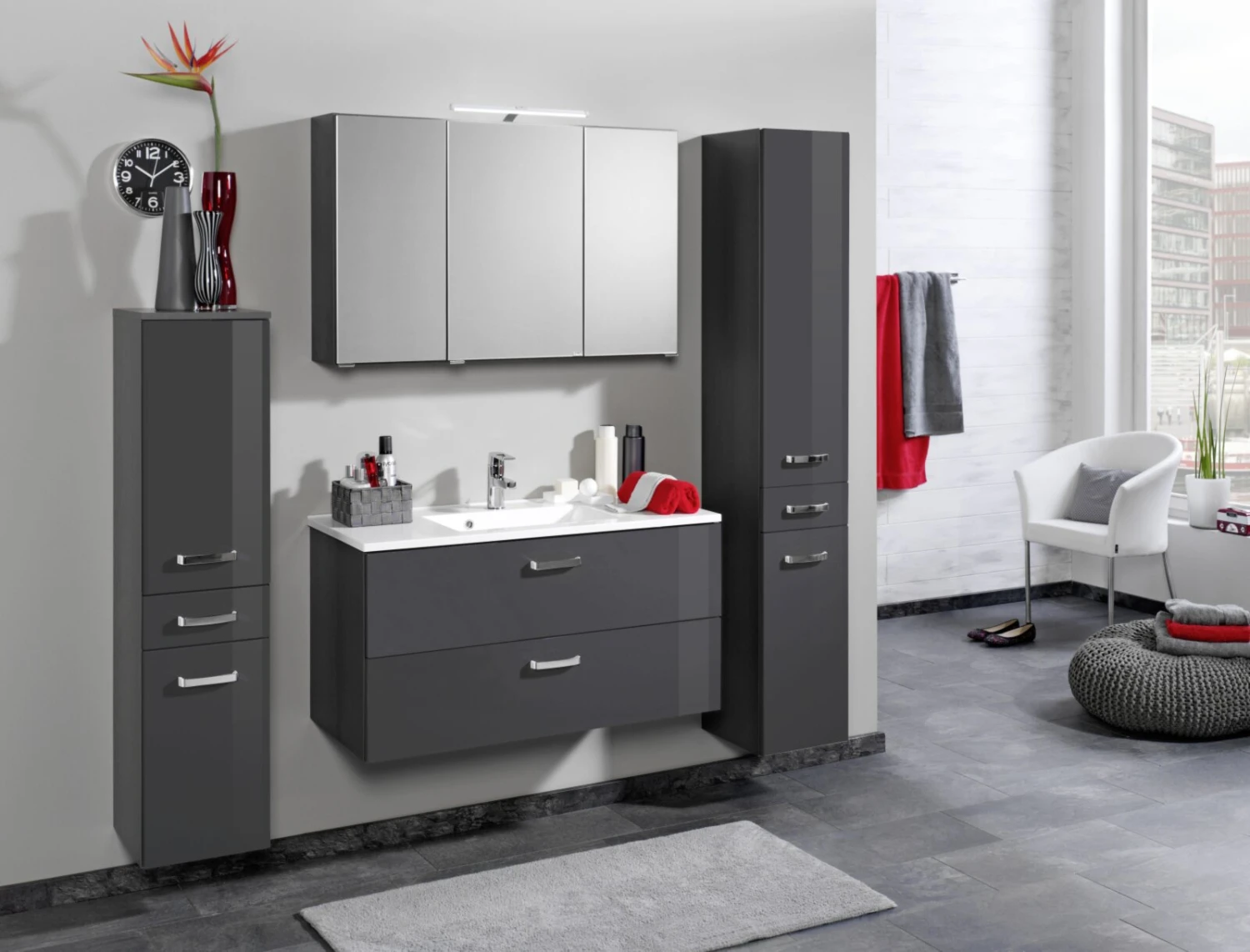 Waschtisch BOLOGNA – grafitgrau-grau Hochglanz – 100 cm