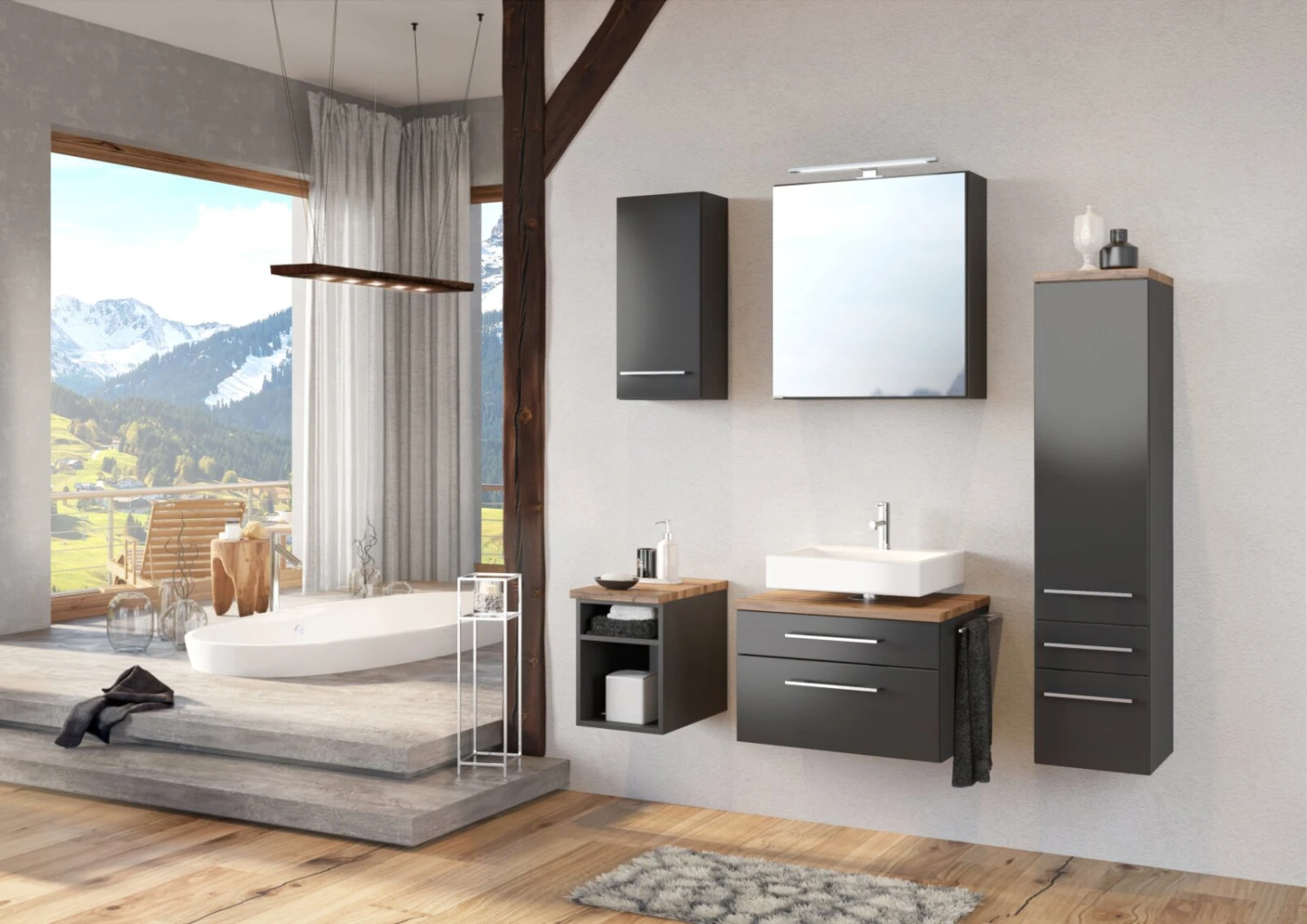 Waschtisch DAVOS – grafitgrau – Wotaneiche – 60 cm breit