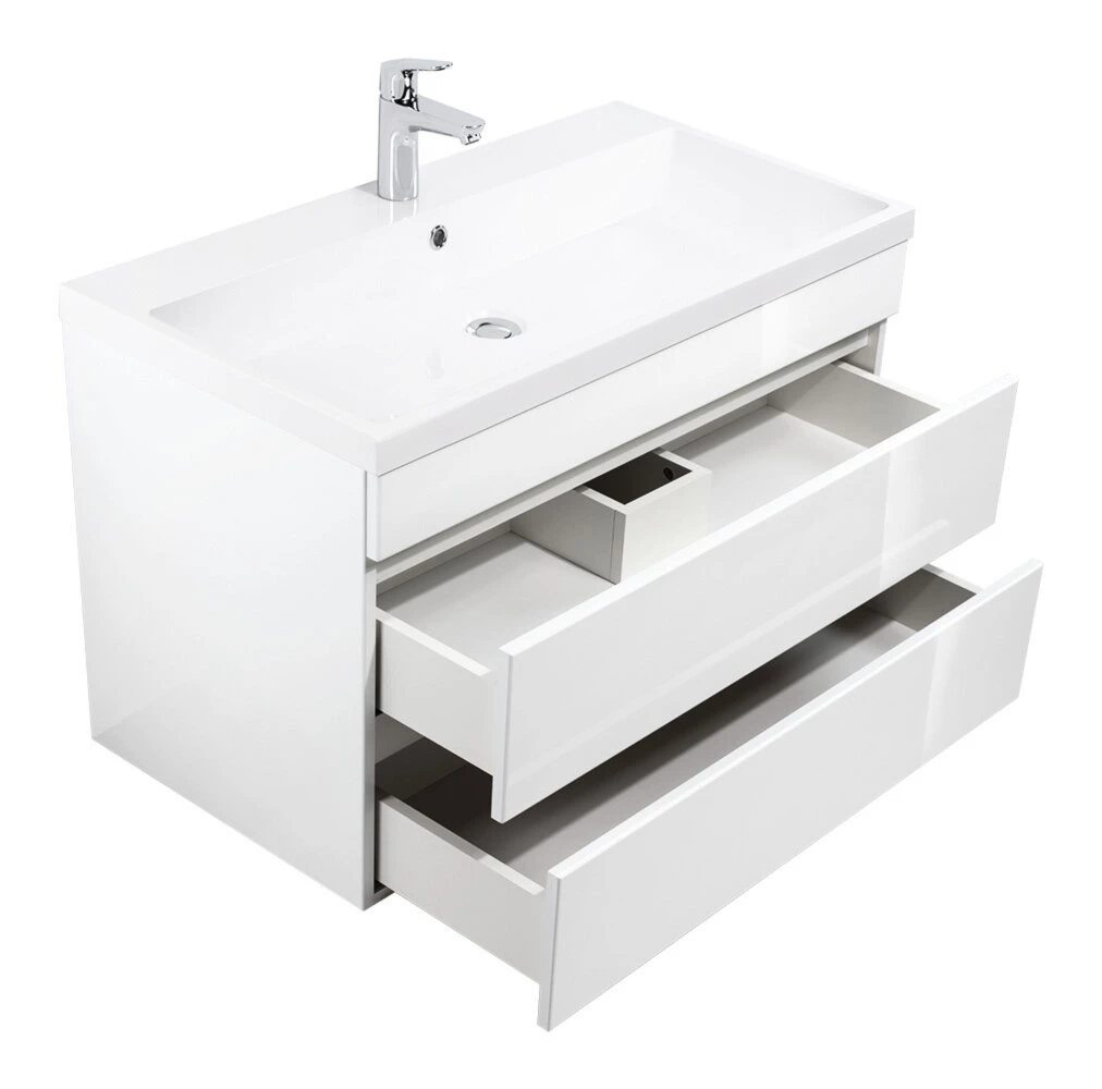 Waschtisch FELINI – weiß Hochglanz-weiß – grifflos – 90 cm