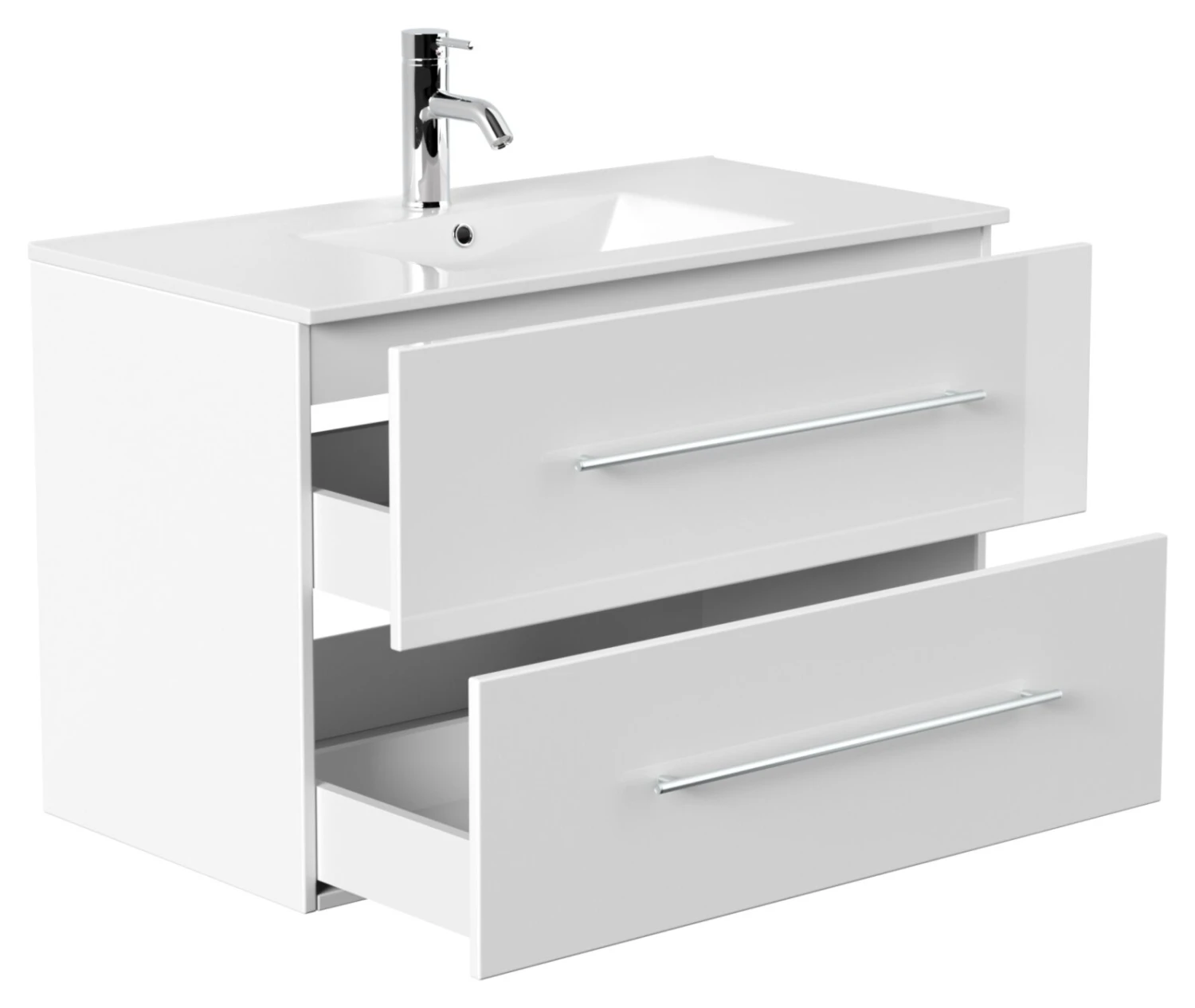 Waschtisch HOMELINE – weiß Hochglanz – mit Waschbecken – 90 cm