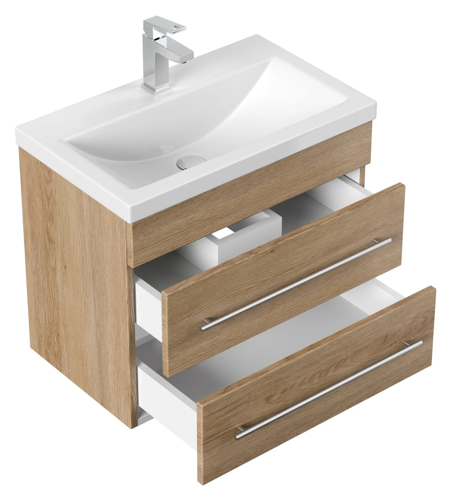 Waschtisch PORTUS – Eiche hell – mit Waschbecken – 2 Schubkästen – 60 cm
