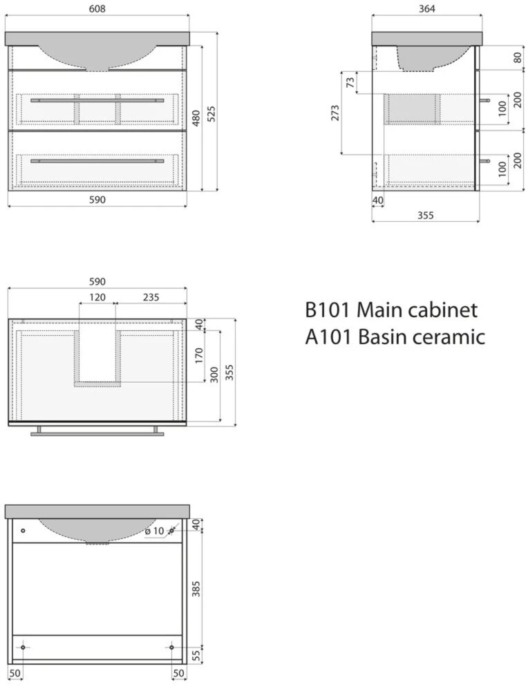- Maße Unterschrank: BxHxT ca. 59 x 48 x 35 cm