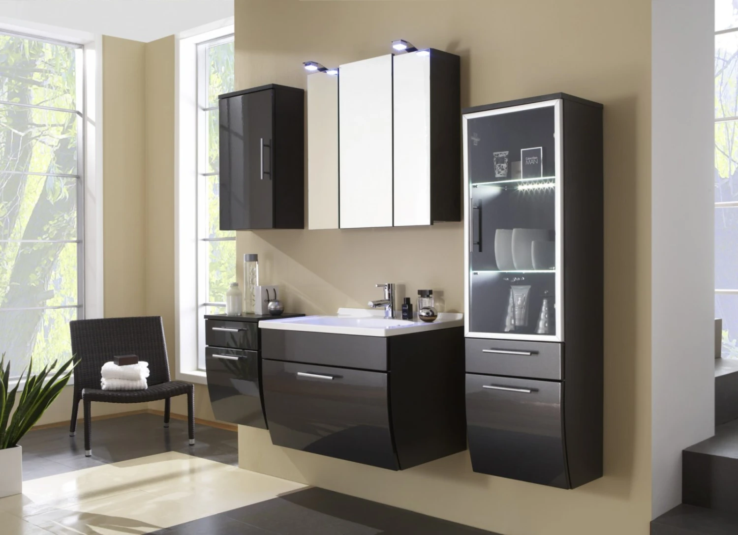 Aus der modernen Badezimmerserie SALONA präsentiert sich dieser Waschtisch in Anthrazit und mit hochglänzender Front, bei dem das Mineralguss-Waschbecken in der Lieferung mit inbegriffen ist. Er ist mit einer geräumigen Klappe ausgestattet, in der viele Baduntensilien verstaut werden können. Die moderne Optik wird noch stimmig von den Echtmetallgriffen abgerundet.