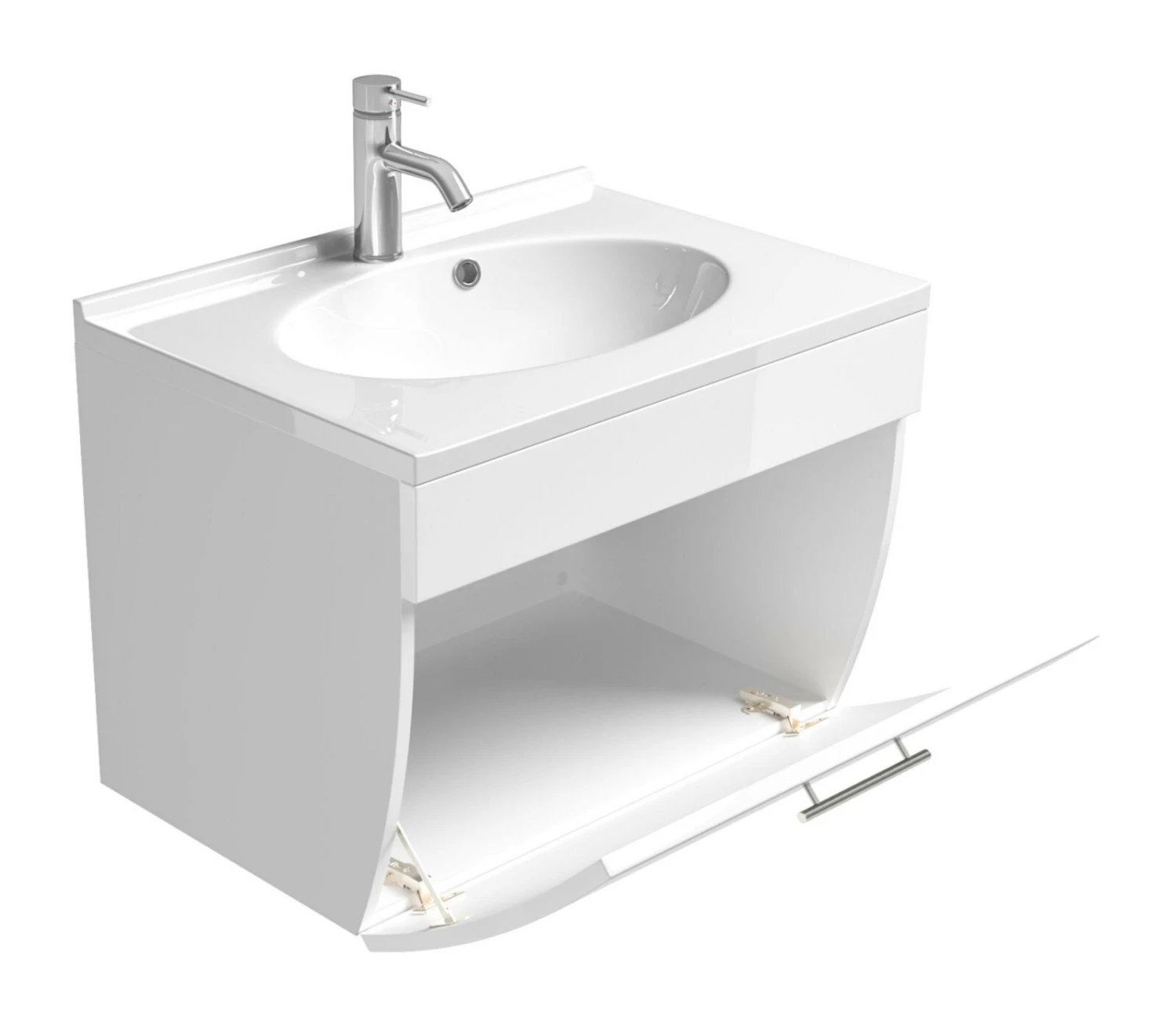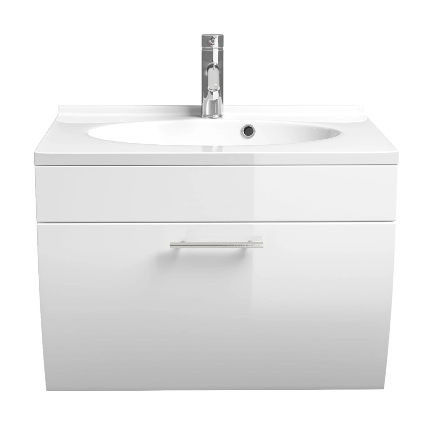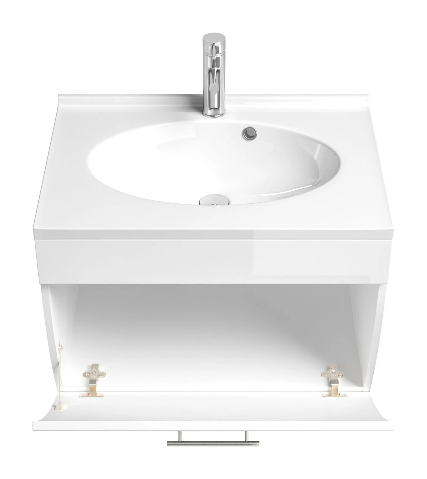 Aus der modernen Badezimmerserie SALONA präsentiert sich dieser Waschtisch in Weiß und mit hochglänzender Front, bei dem das Mineralguss-Waschbecken in der Lieferung mit inbegriffen ist. Er ist mit einer geräumigen Klappe ausgestattet, in der viele Baduntensilien verstaut werden können. Die moderne Optik wird noch stimmig von den Echtmetallgriffen abgerundet.