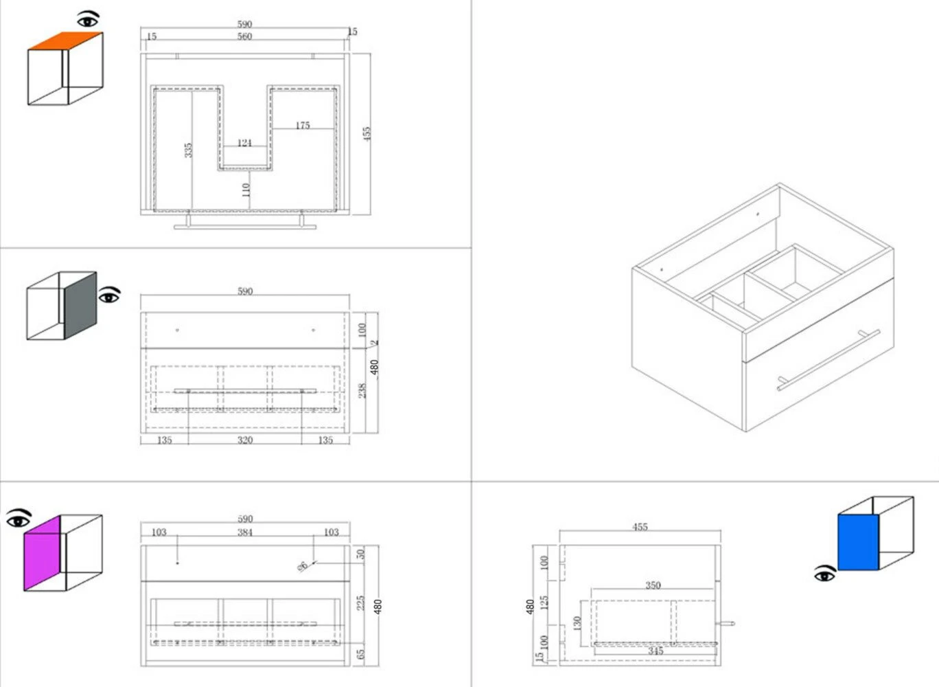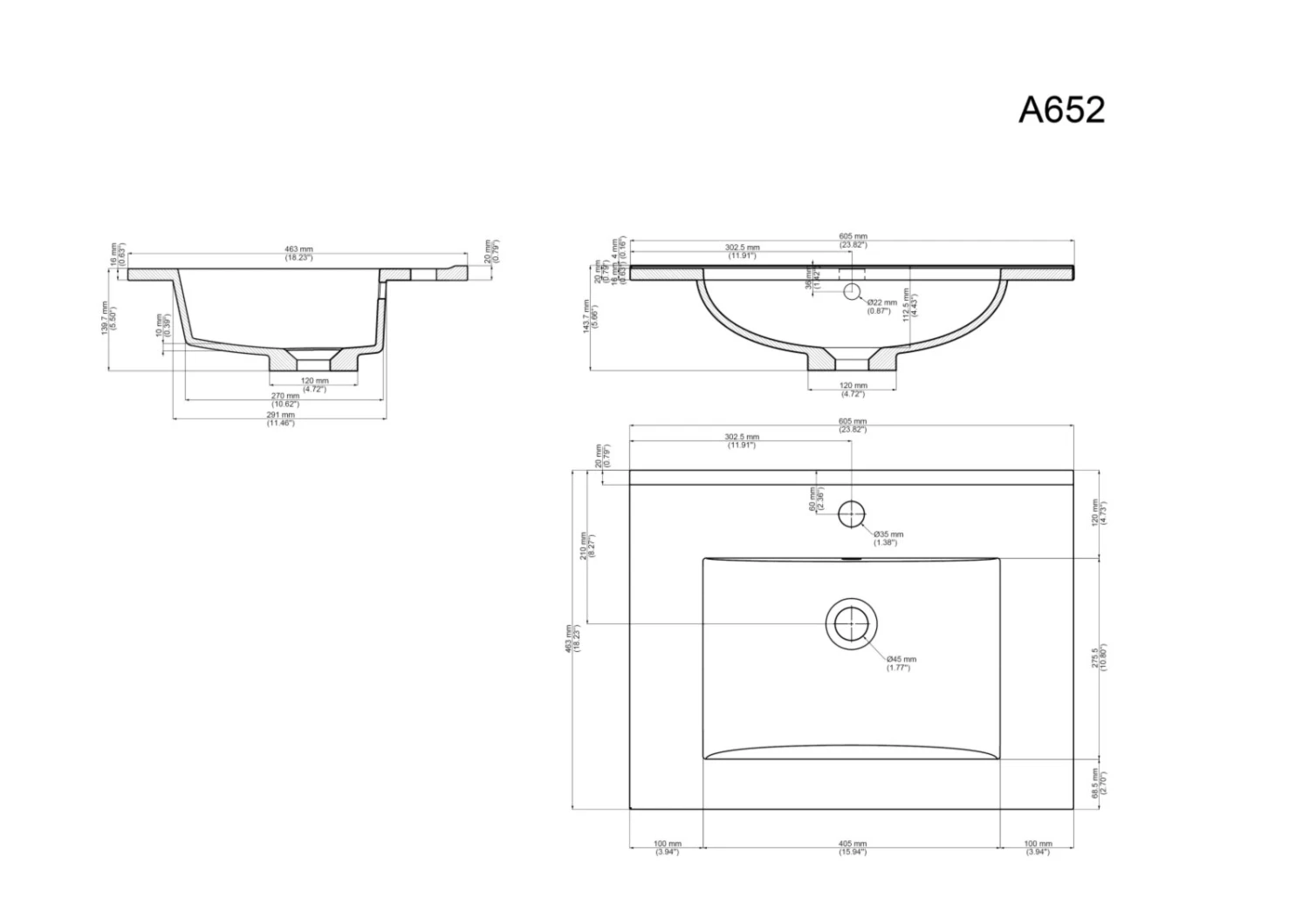- Maße Waschbecken: BxHxT ca. 61 x 1,7 x 46,5 cm