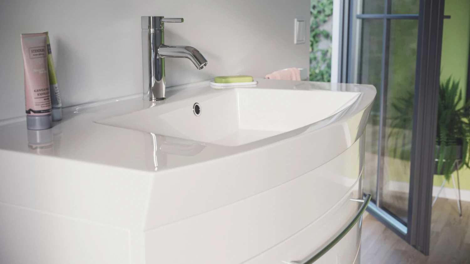 Dieser Waschtisch in Weiß Hochglanz ist durch seine abgerundeten Fronten ein echter Hingucker und kann in jedem Badezimmer eingesetzt werden. Die zwei Schubladen bieten eine Menge Platz für sämtliche Badutensilien und sind mit Softclose für ein leises Schließen ausgestattet. Im Lieferumfang ingebriffen ist bereits ein schönes Waschbecken aus Mineralguss.